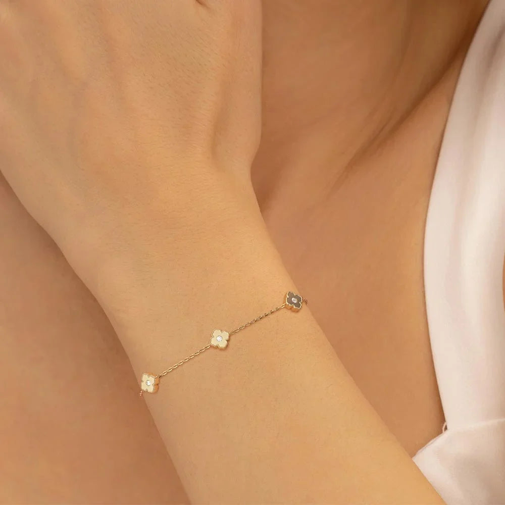 Carry luck and love wherever you go with the Lucky Hearts Four-Leaf Clover Bracelet. This enchanting piece combines the timeless symbol of fortune—the four-leaf clover—with delicate heart-shaped details, creating a meaningful charm that represents hope, faith, love, and luck.
