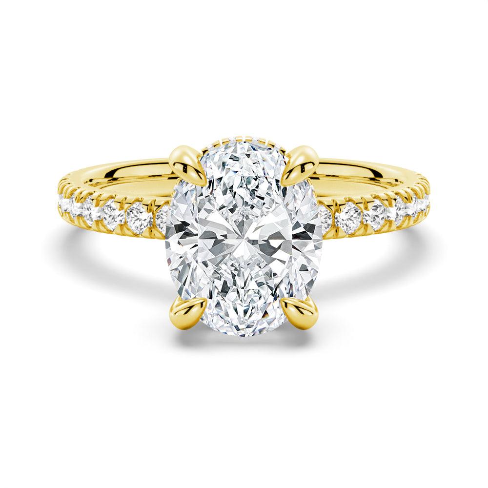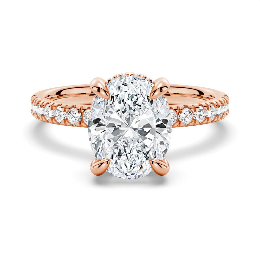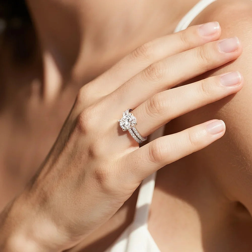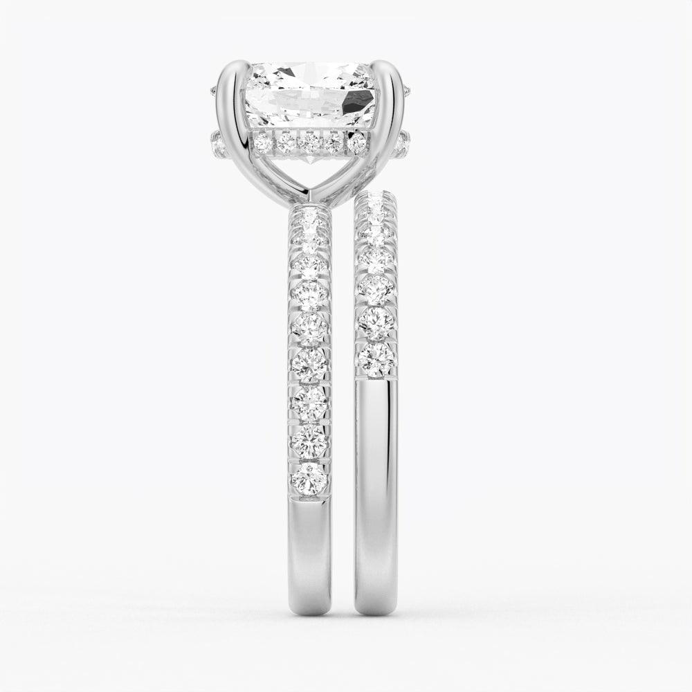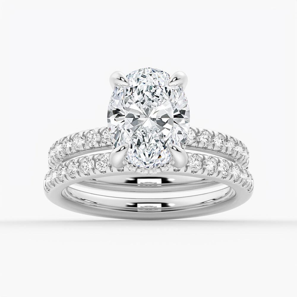 Micropavé Oval Hidden Halo Moissanite Ring Set with Matching Wedding Band