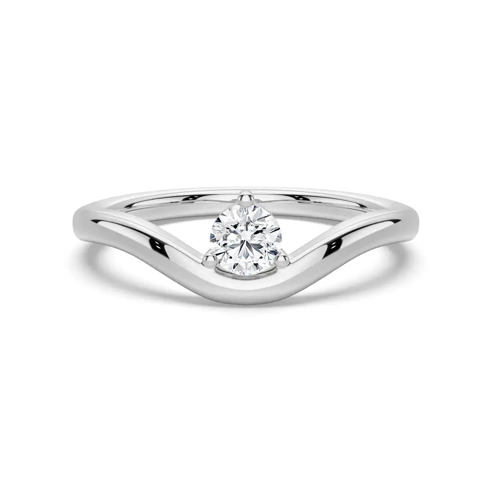 The Modern Curved Band Solitaire Promise Ring embodies sleek simplicity and heartfelt meaning. Its gently curved band creates a soft, flowing silhouette that gracefully wraps around the finger, representing the continuous journey of love and commitment.