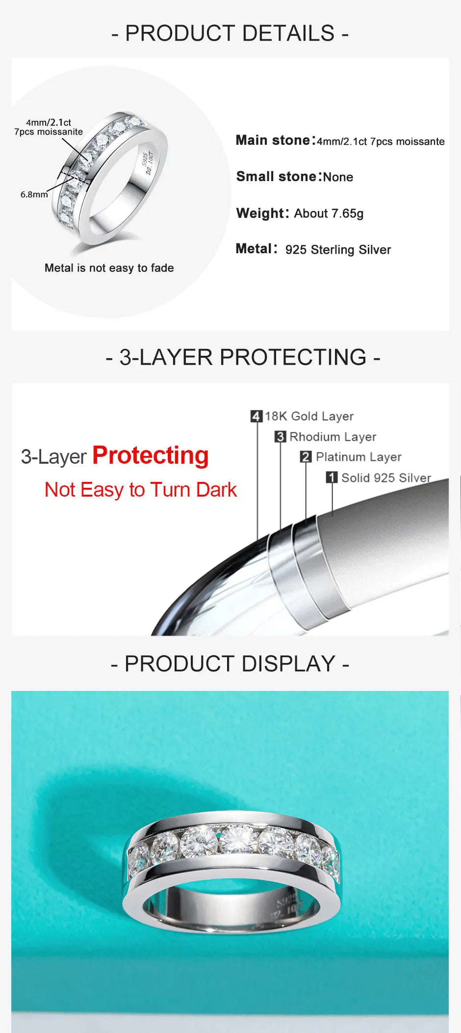 Celebrate your love with the Zeevera.com 4mm Moissanite Wedding Band. This elegant band features a continuous row of 4mm moissanite stones, set in 925 sterling silver for a timeless and elegant look. Perfect for weddings and special occasions.