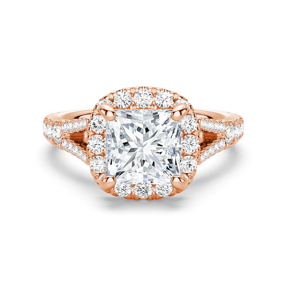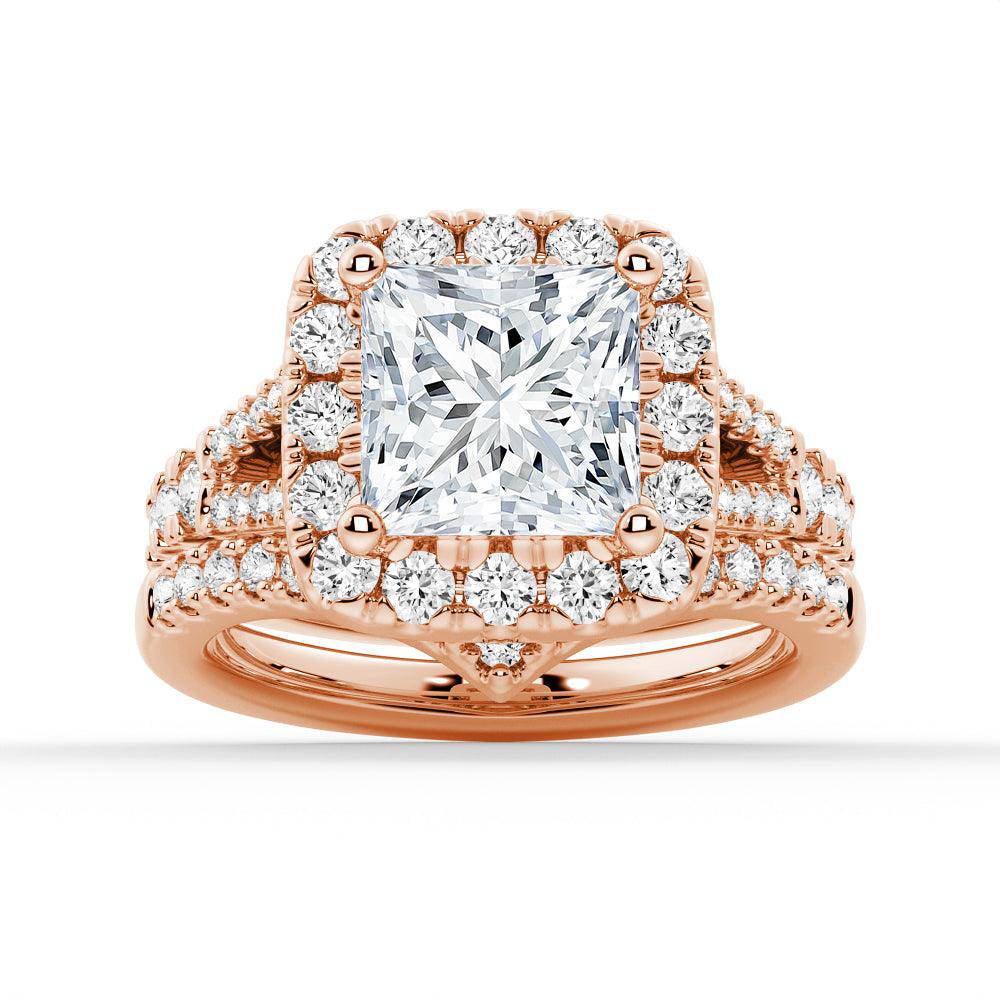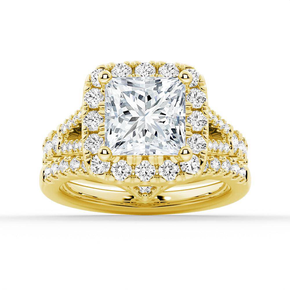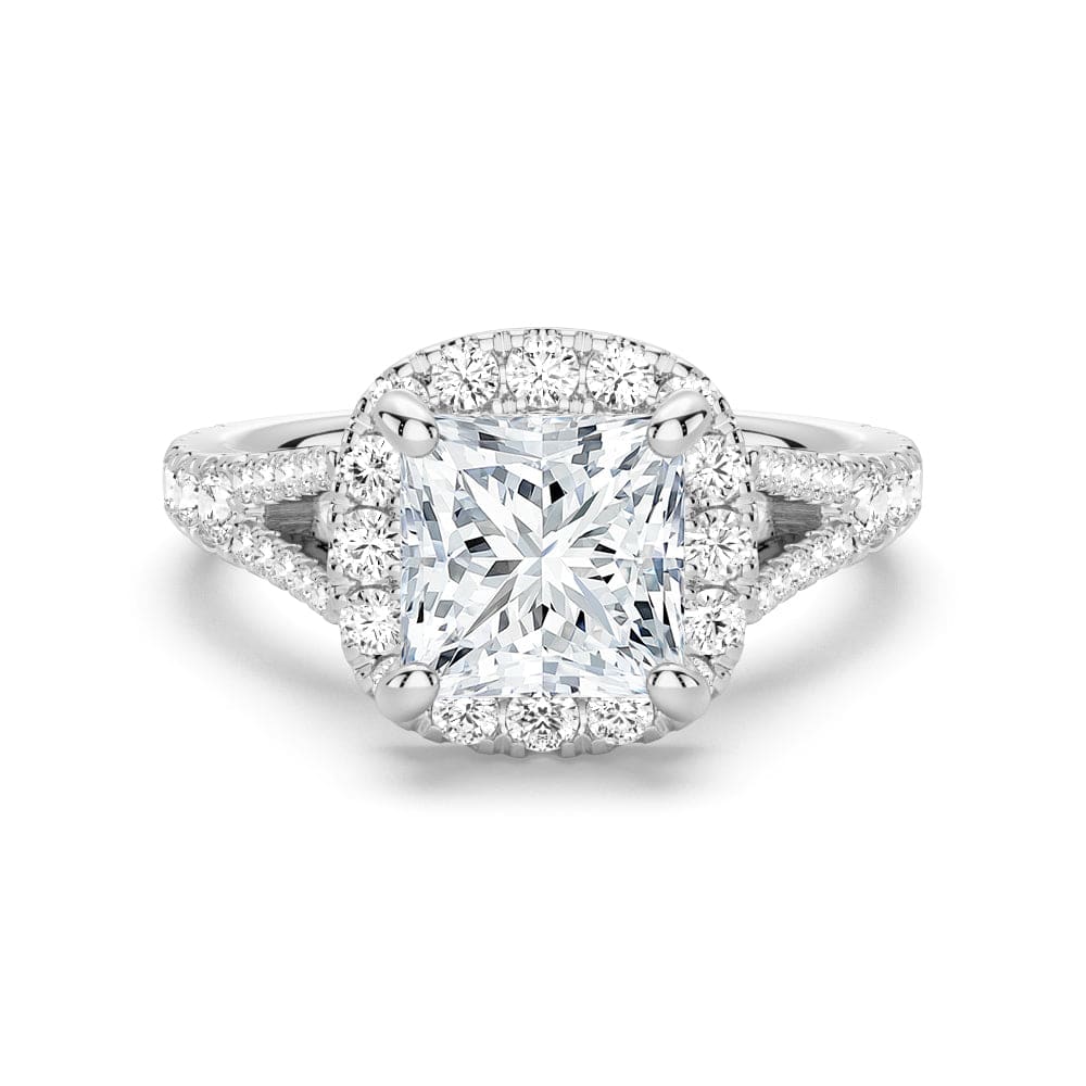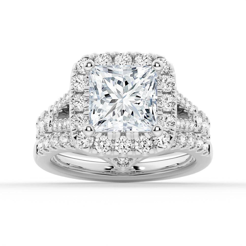 Princess Cut Split Shank Moissanite Halo Engagement Ring