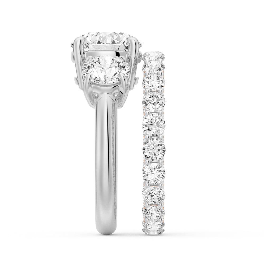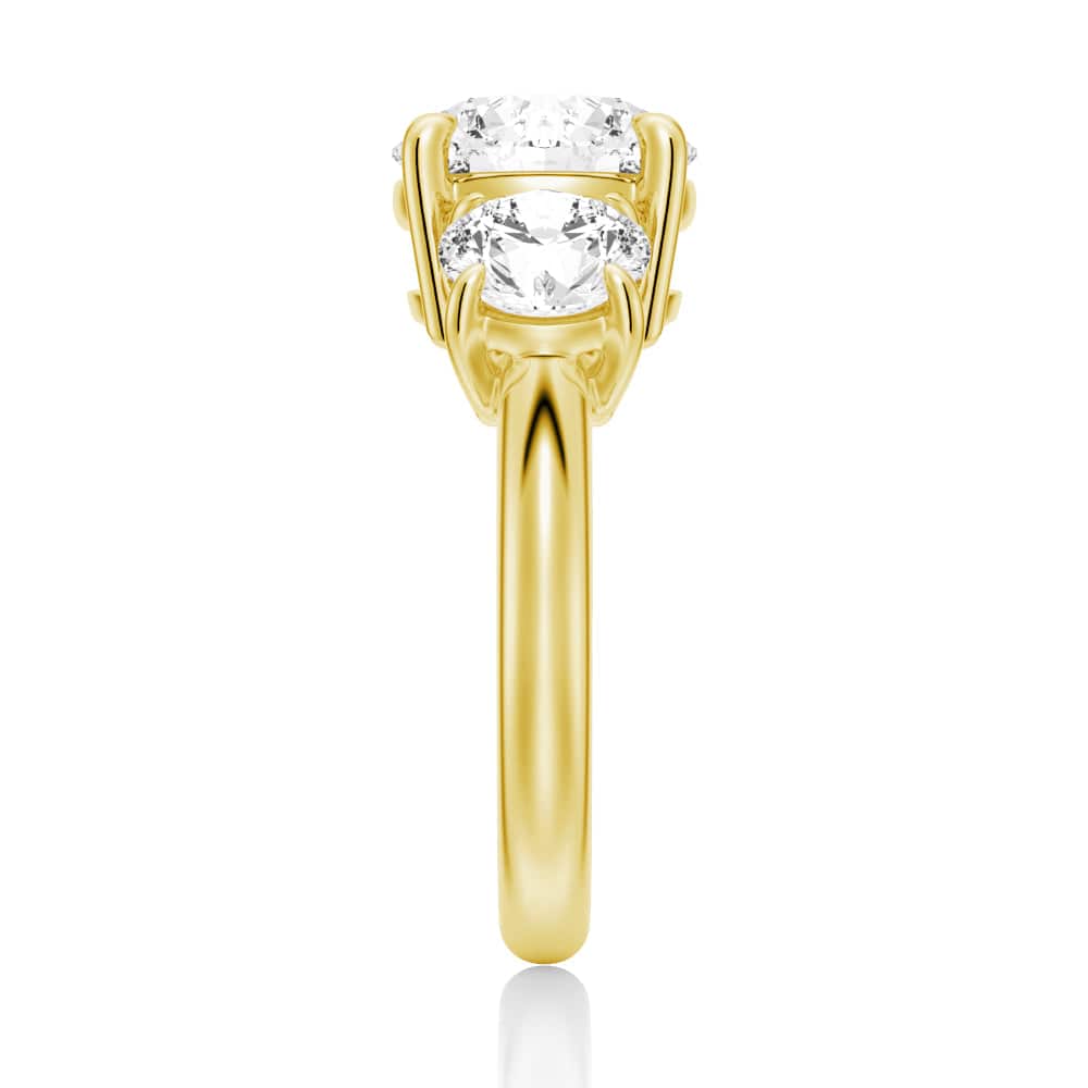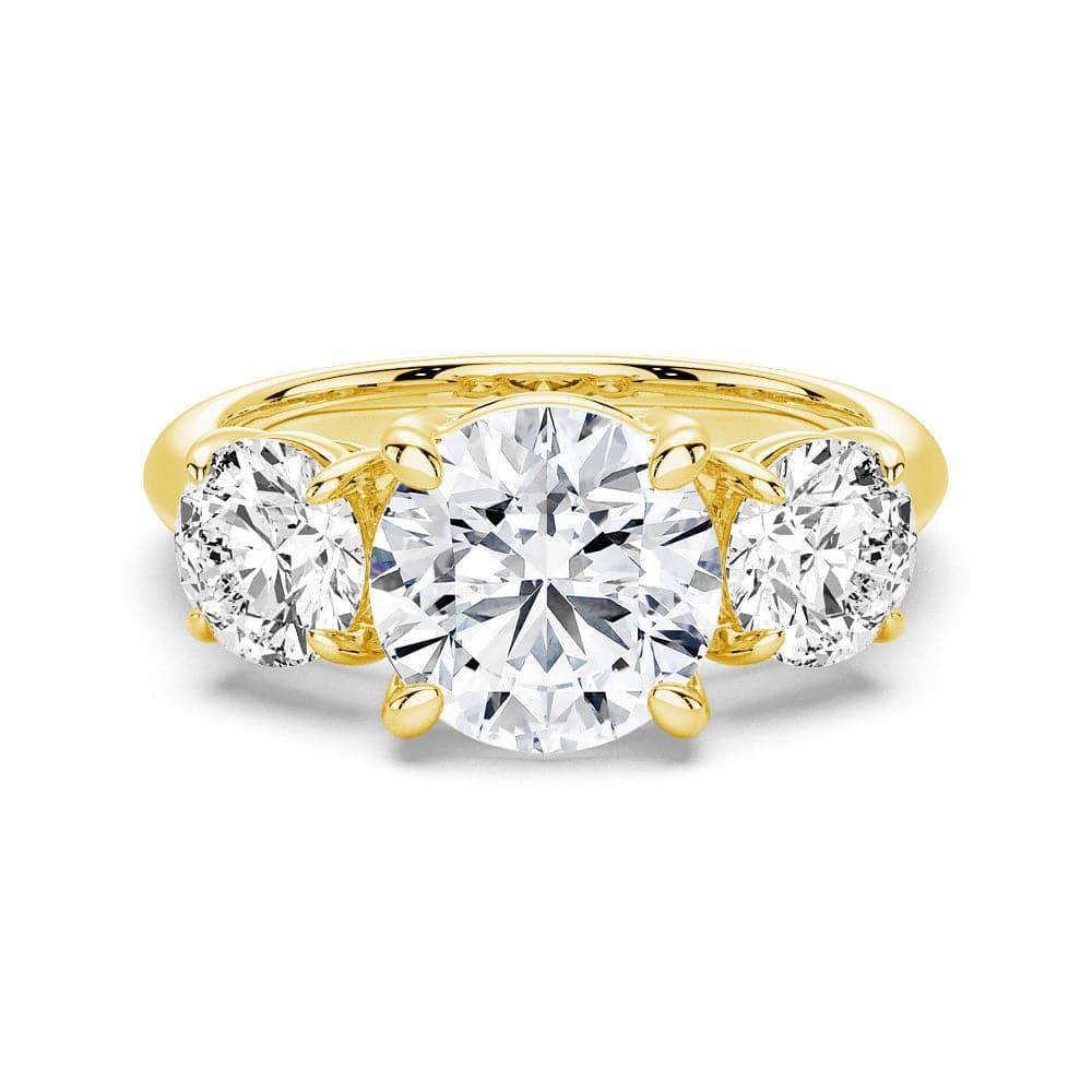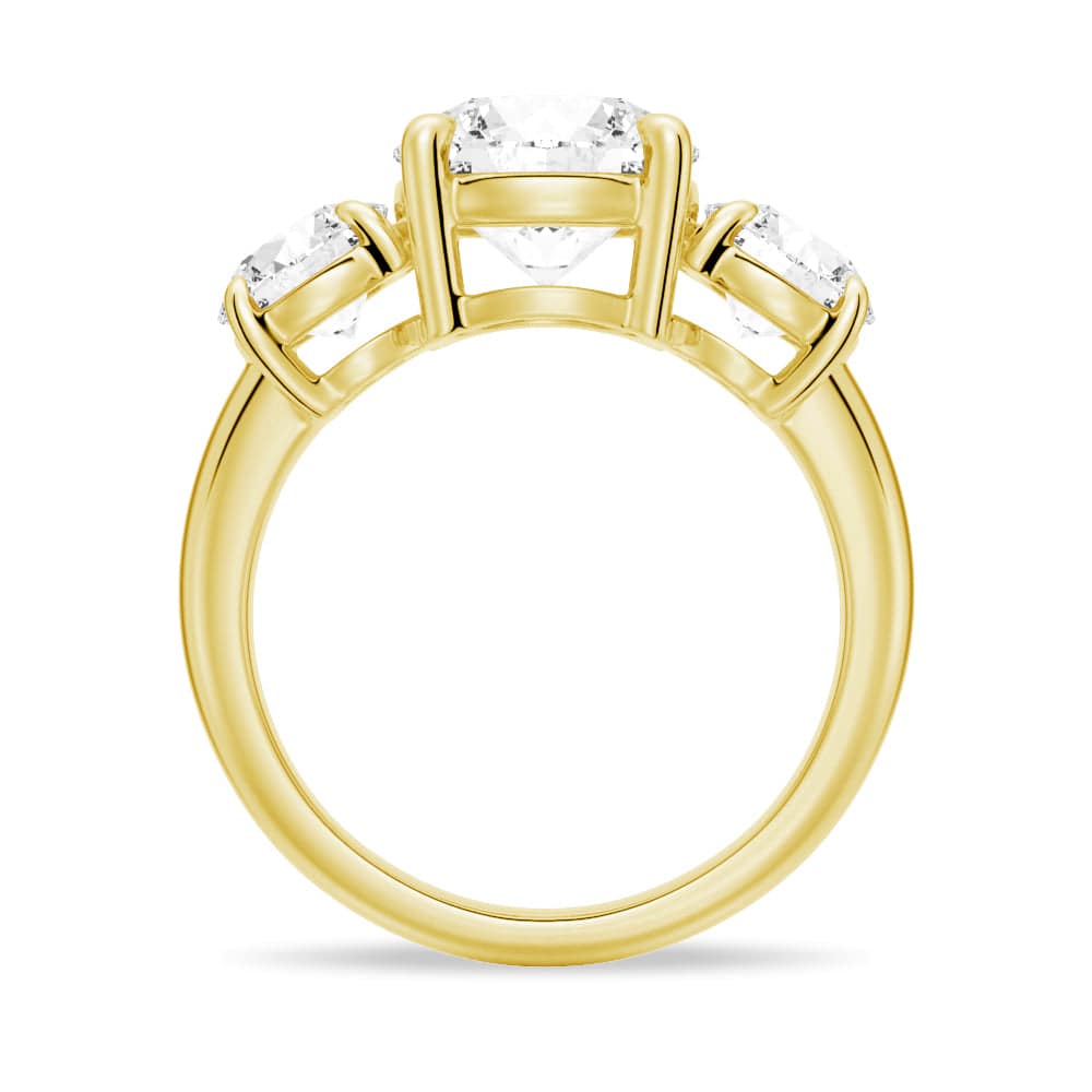 The three-stone design of this ring symbolizes the past, present, and future of your relationship, making it the perfect choice for a romantic proposal or anniversary gift. Its timeless design also ensures that it will never go out of style, making it a cherished family heirloom for generations to come.