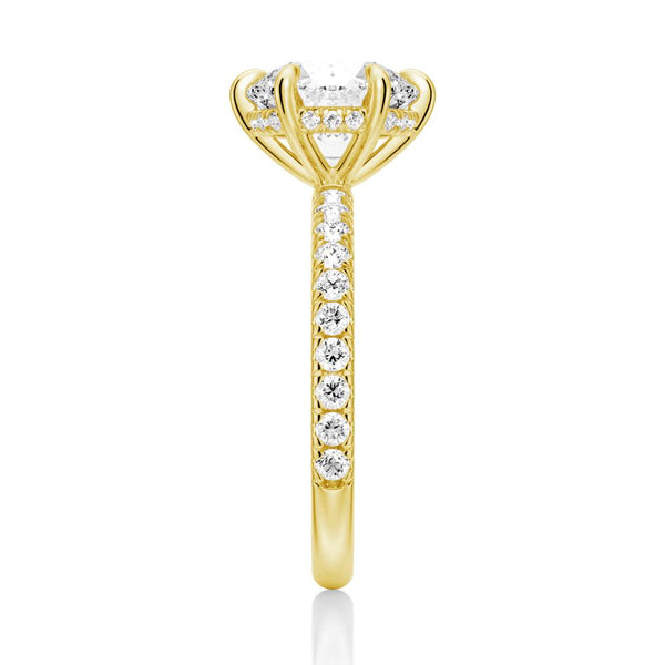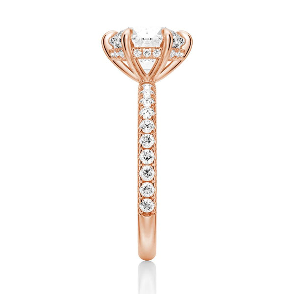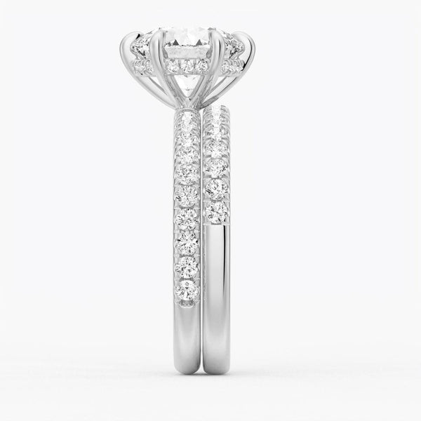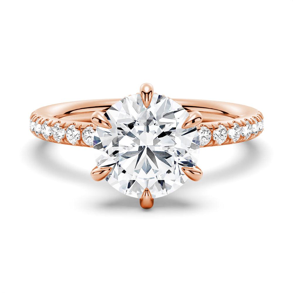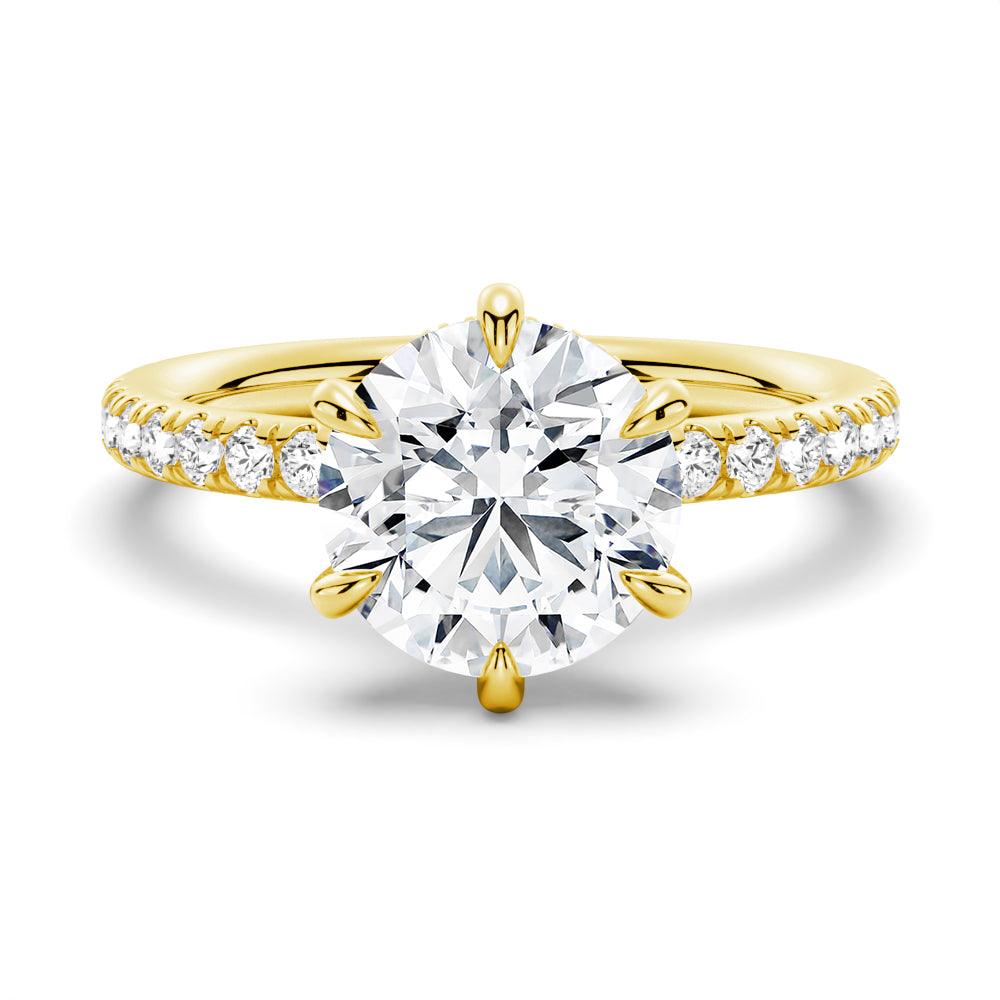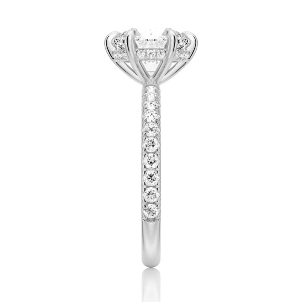Petite Six Prong Micropavé Moissanite Engagement Ring With Hidden Halo