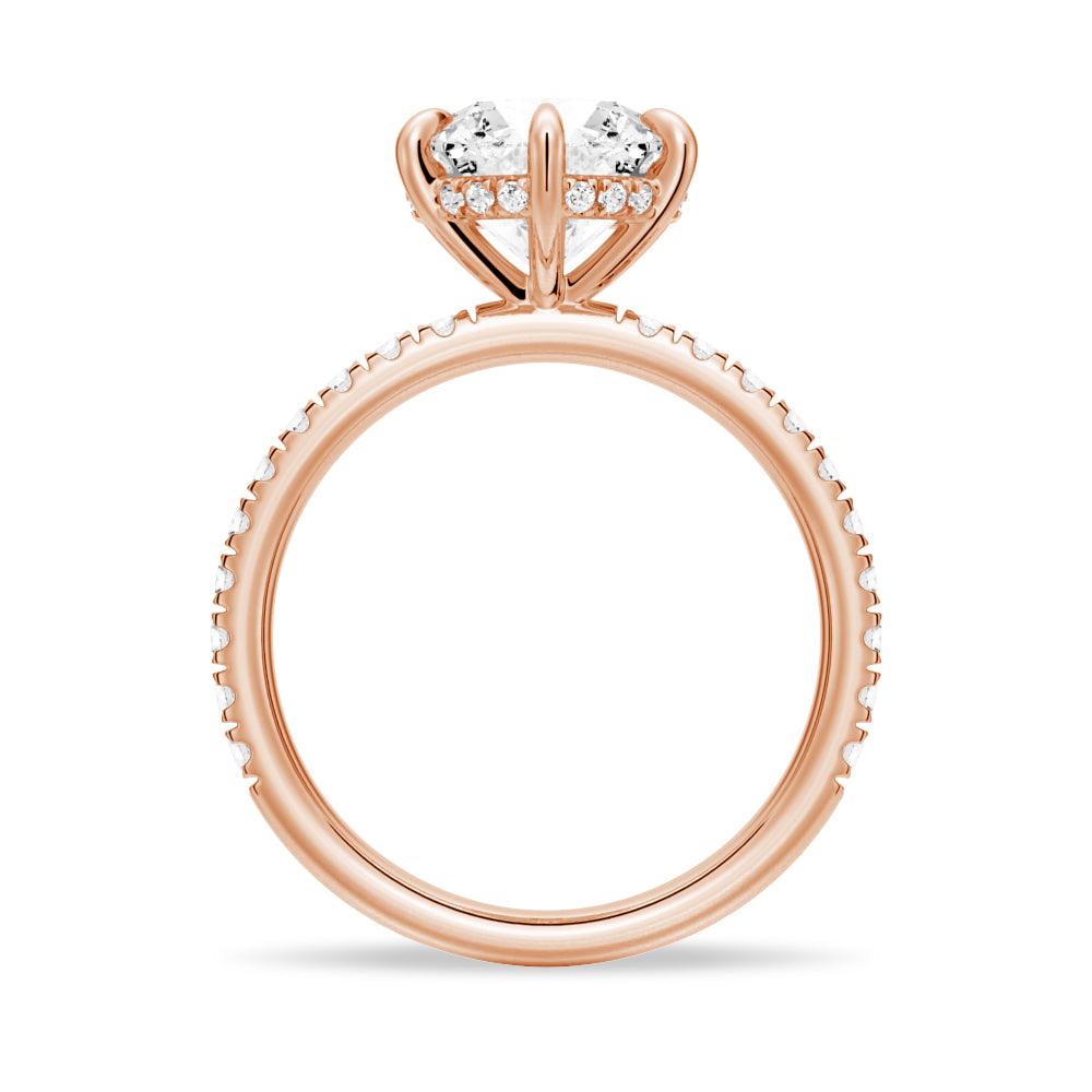 What sets this ring apart is the hidden halo, discreetly enhancing the center stone's radiance. This thoughtful detail adds a layer of allure and romance, making the ring truly unique.