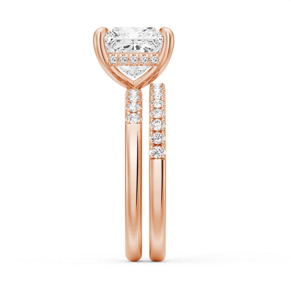 Princess Cut Hidden Halo Moissanite Ring Set with Matching Wedding Band