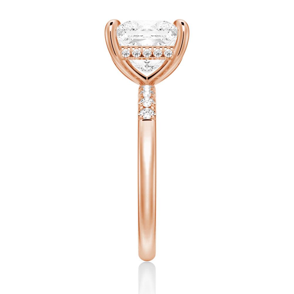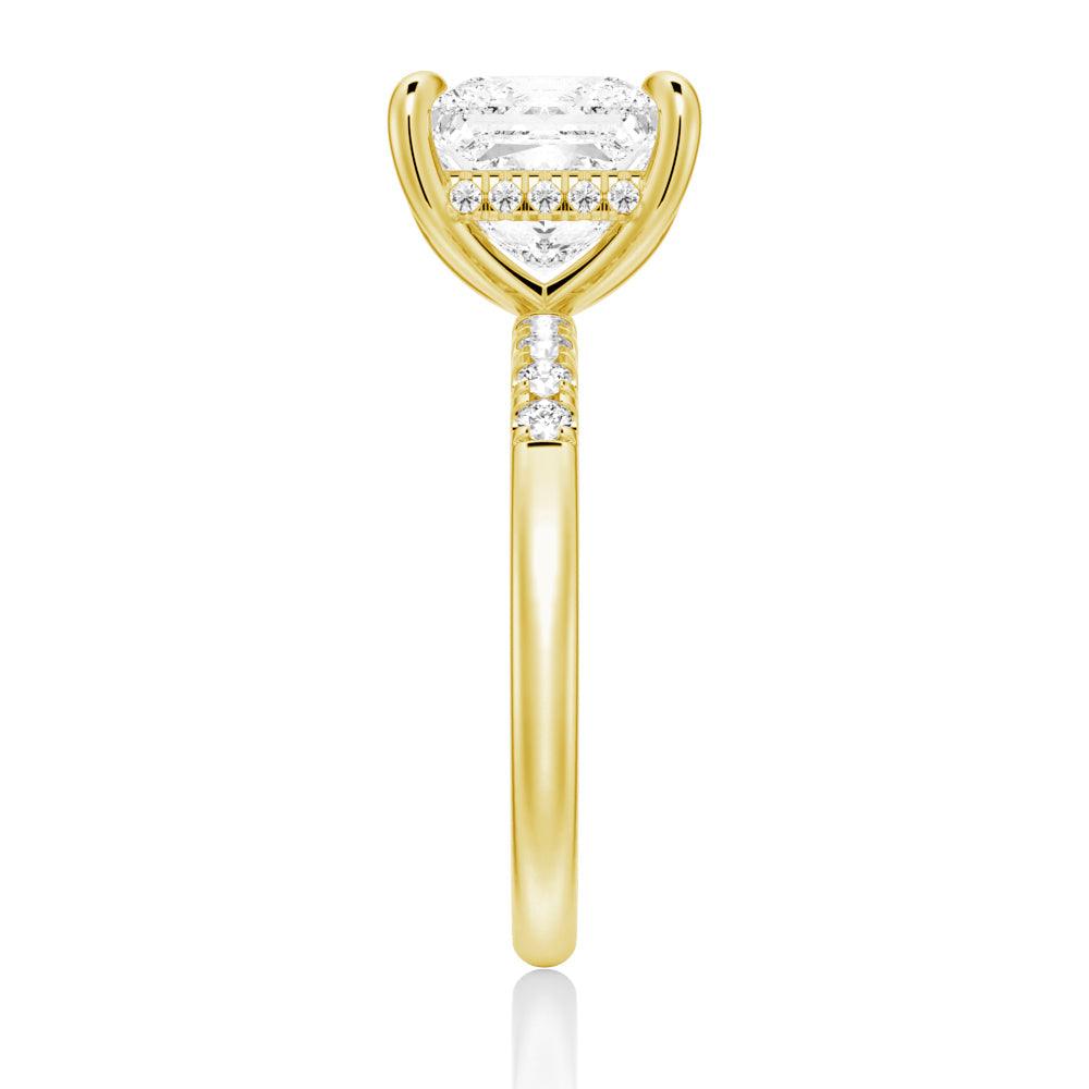 Express all the love you hold in your heart with this shimmering princess-cut engagement ring. Delicate and beautiful, this princess-cut engagement ring features sparkling petite micropavé side stones and a hidden halo to complement your center diamond.