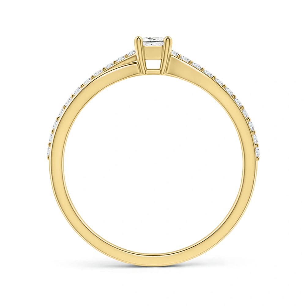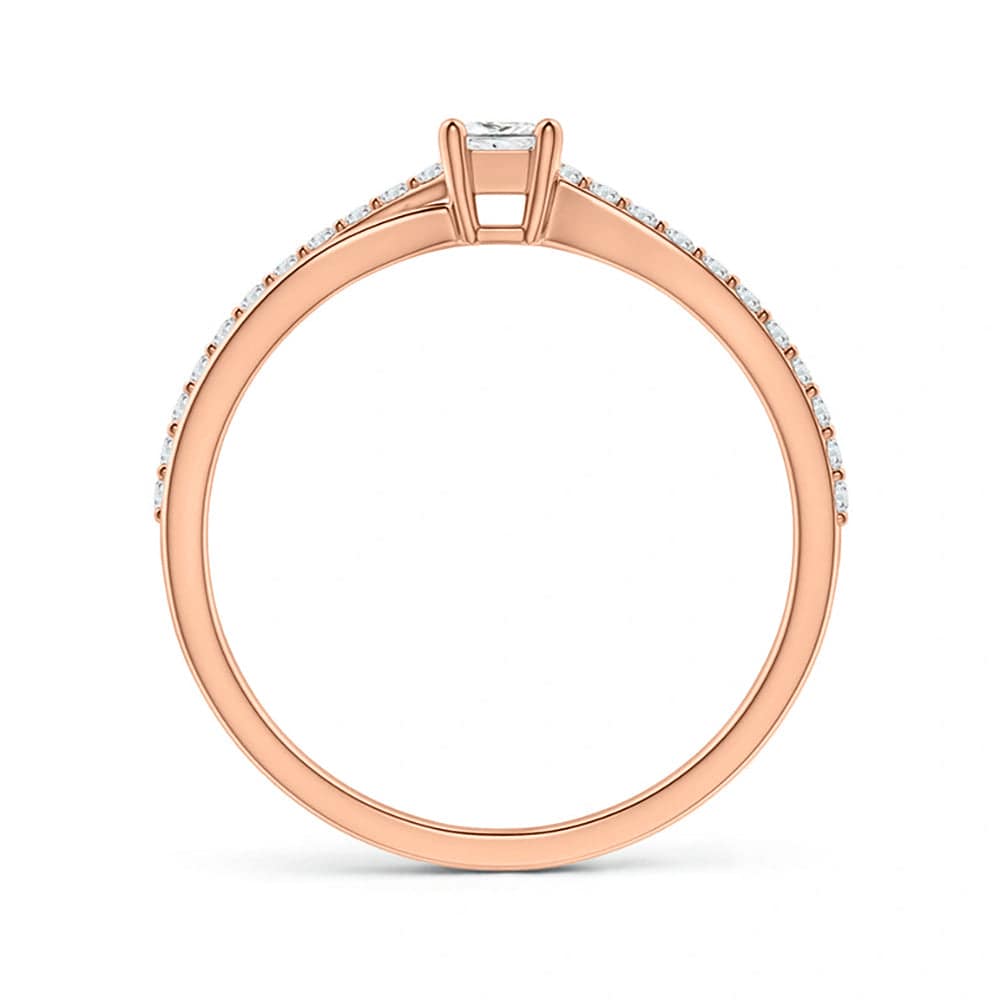 A perfect blend of elegance and sustainability, this Princess-Cut Lab Grown Diamond Split Shank Promise Ring is a symbol of lasting love. Featuring a dazzling princess-cut lab-grown diamond set in a secure prong setting, it offers a contemporary twist with its split shank design.
