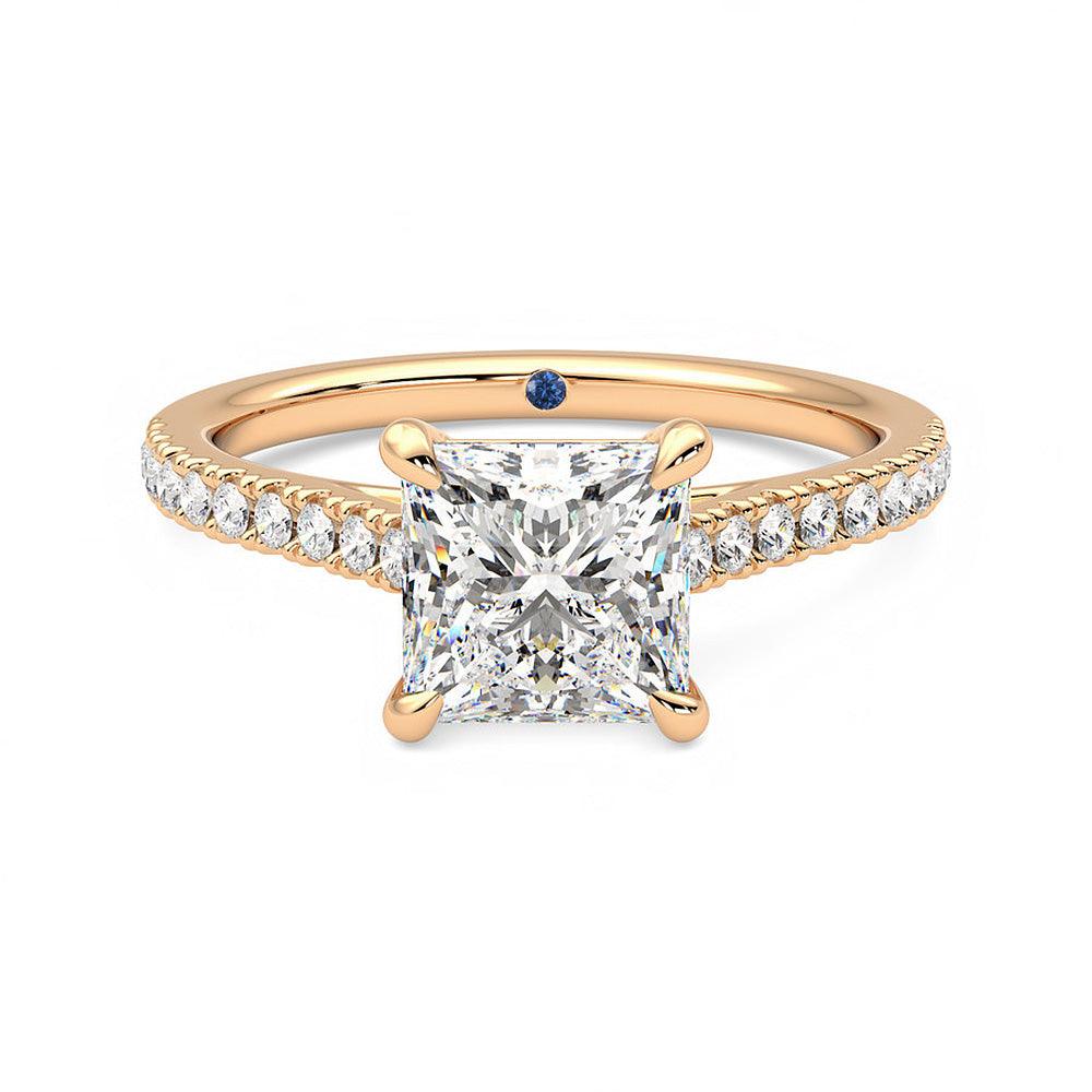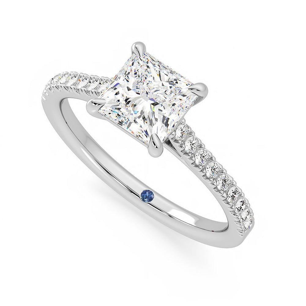 Princess Cut Moissanite Engagement Ring with Hidden Anniversary Stone and Pavé Accents