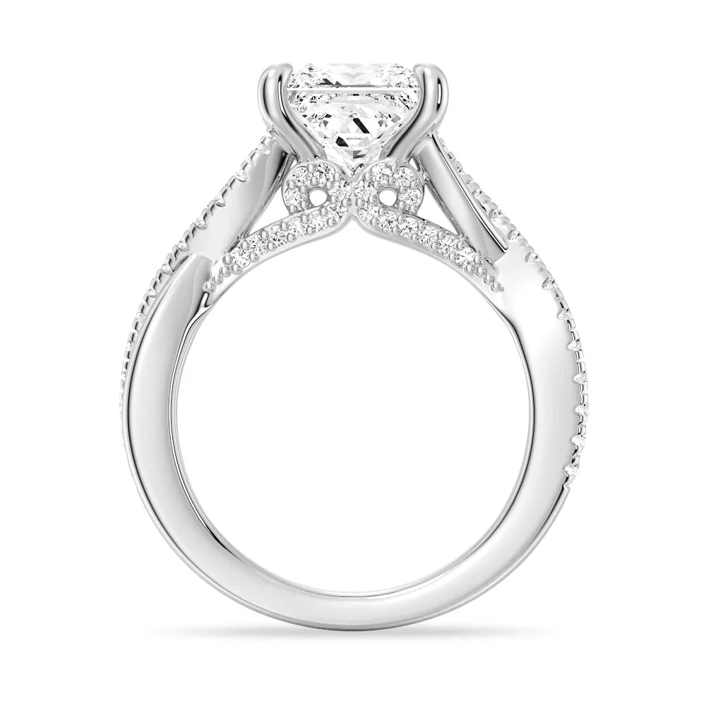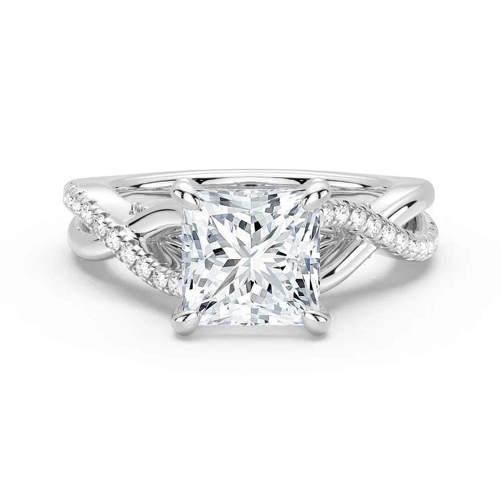 Princess Cut Moissanite Twisted Band Engagement Ring with Hidden Accents