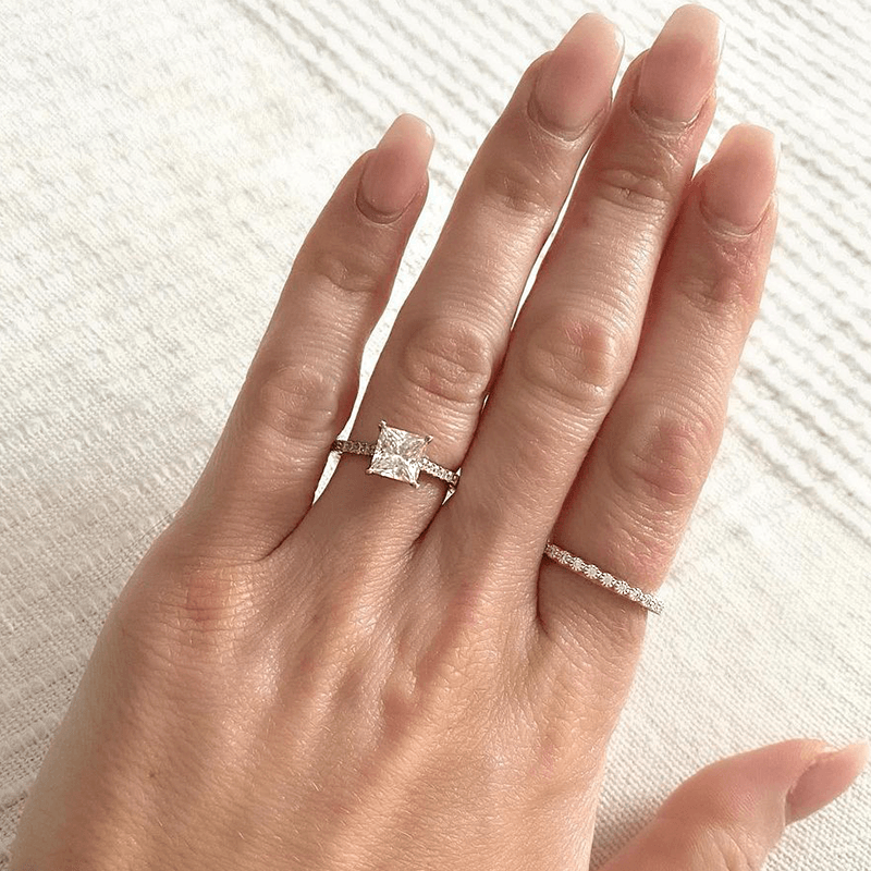 Celebrate your love story with the Princess Cut Pavé Moissanite Engagement Ring—a perfect blend of modern design and timeless allure. Order yours today and embark on a journey of everlasting love and unmatched elegance.