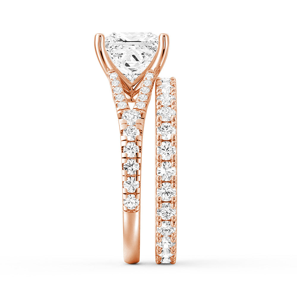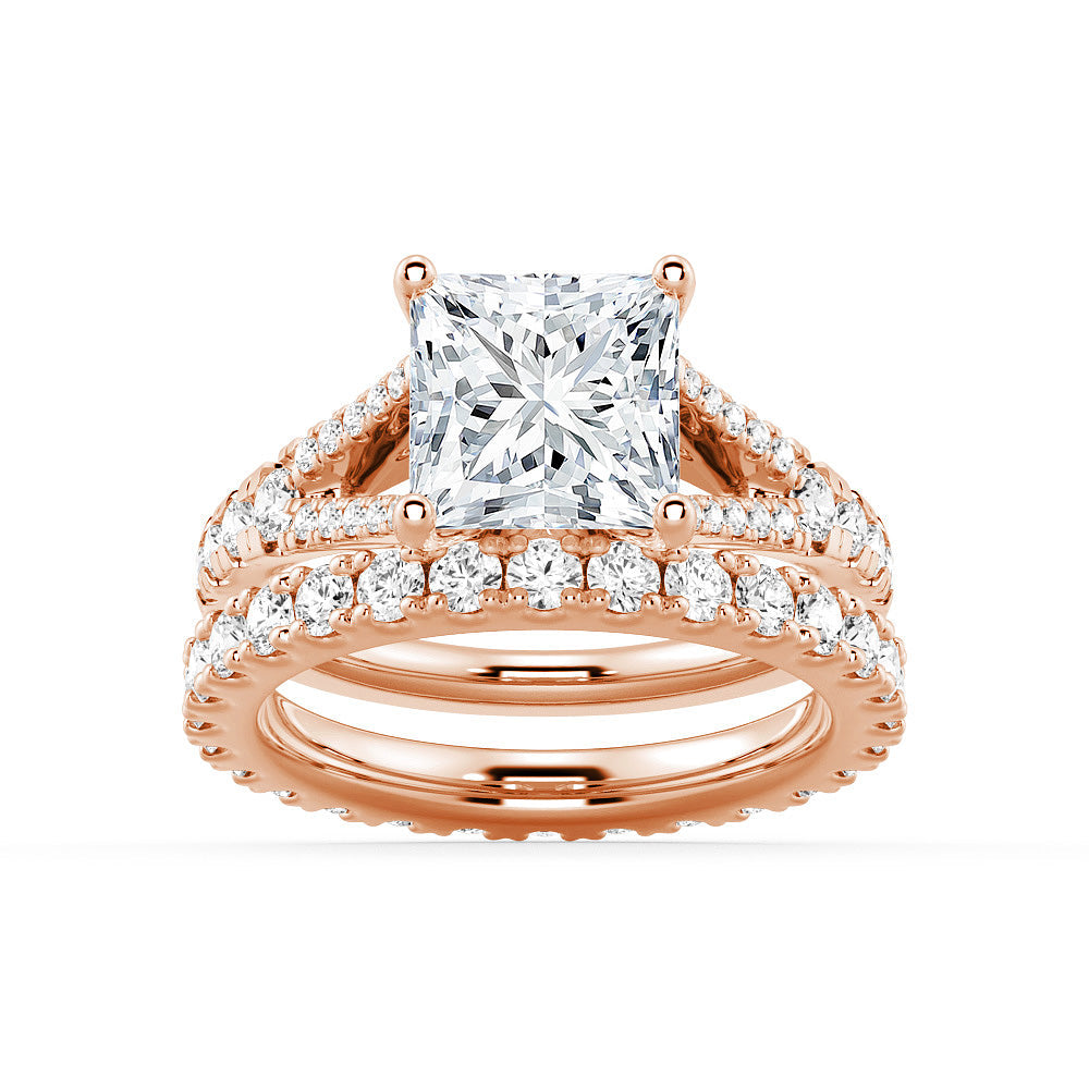 Princess Cut Split Shank Moissanite Ring Set with Matching Wedding Band