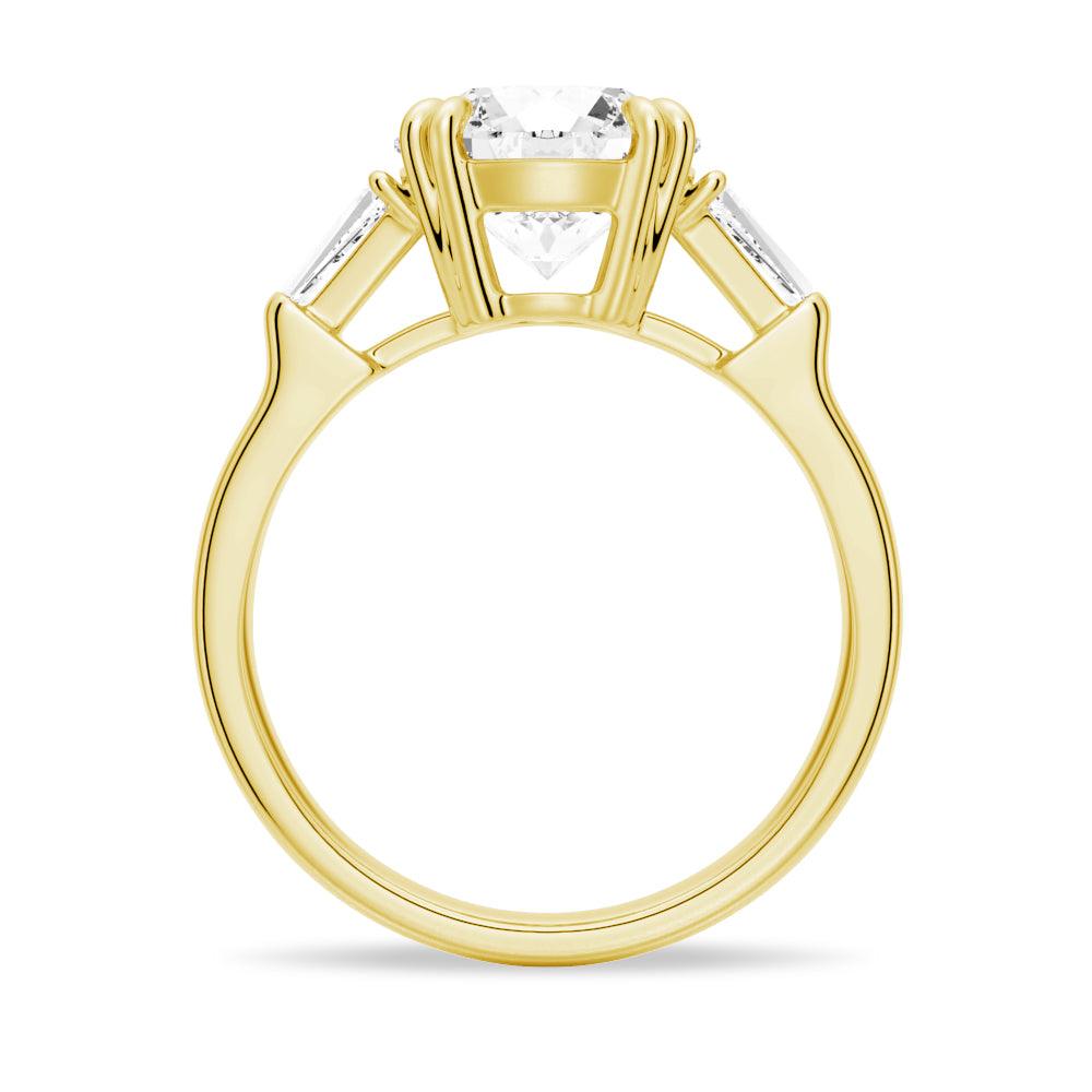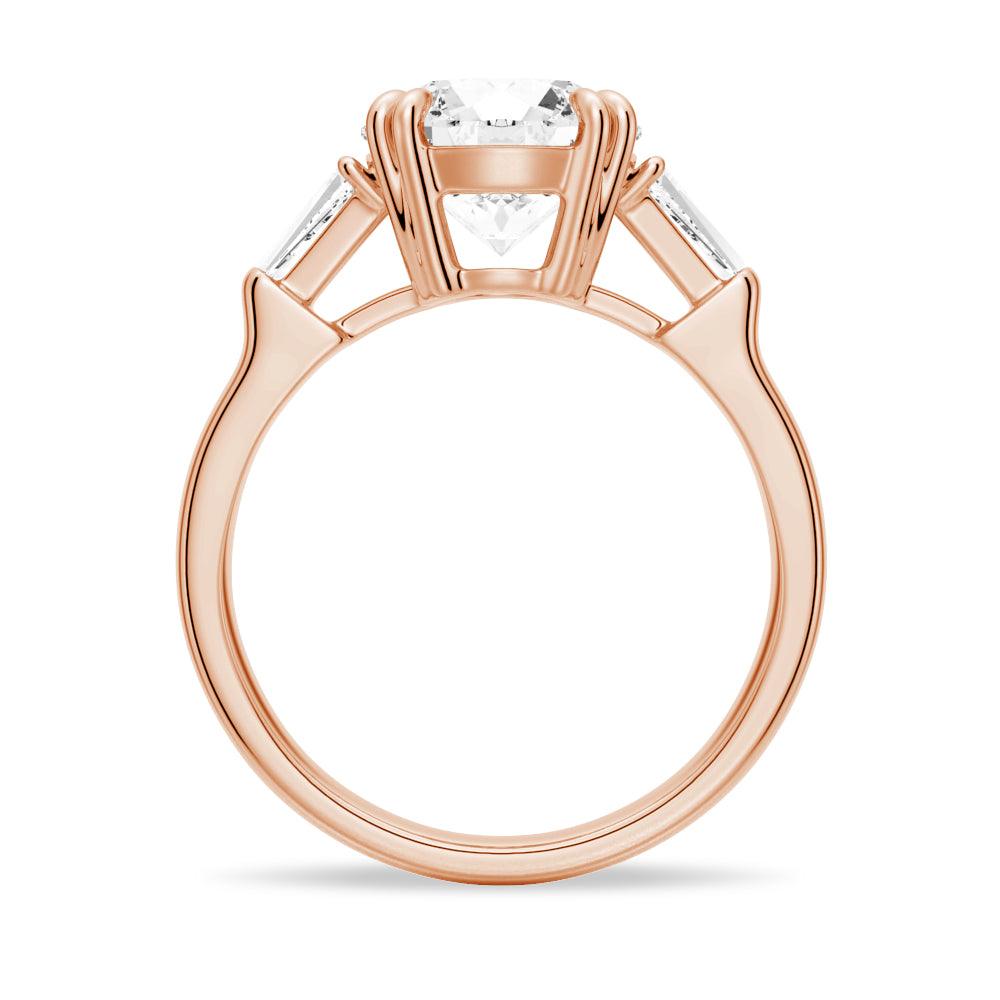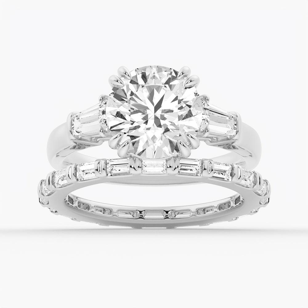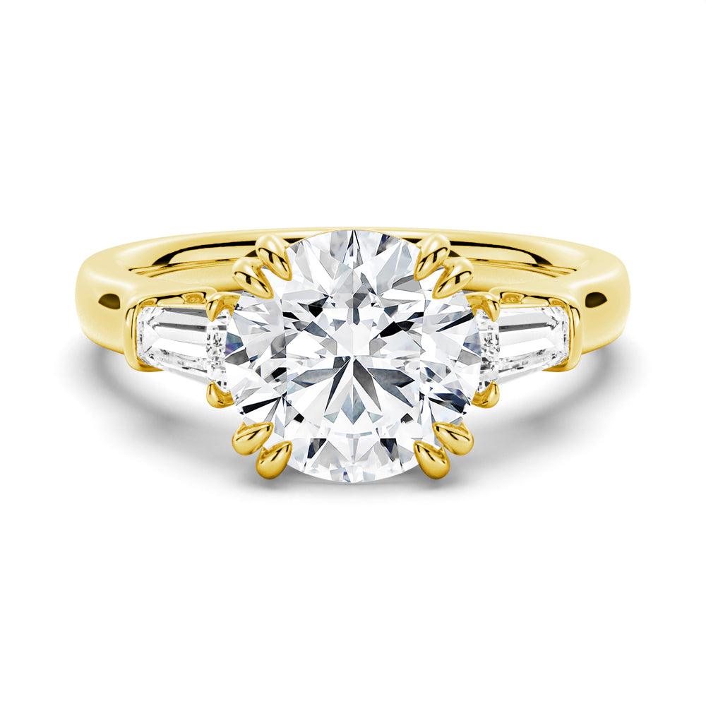 Round Cut Moissanite Engagement Ring with Tapered Baguette Side Stones