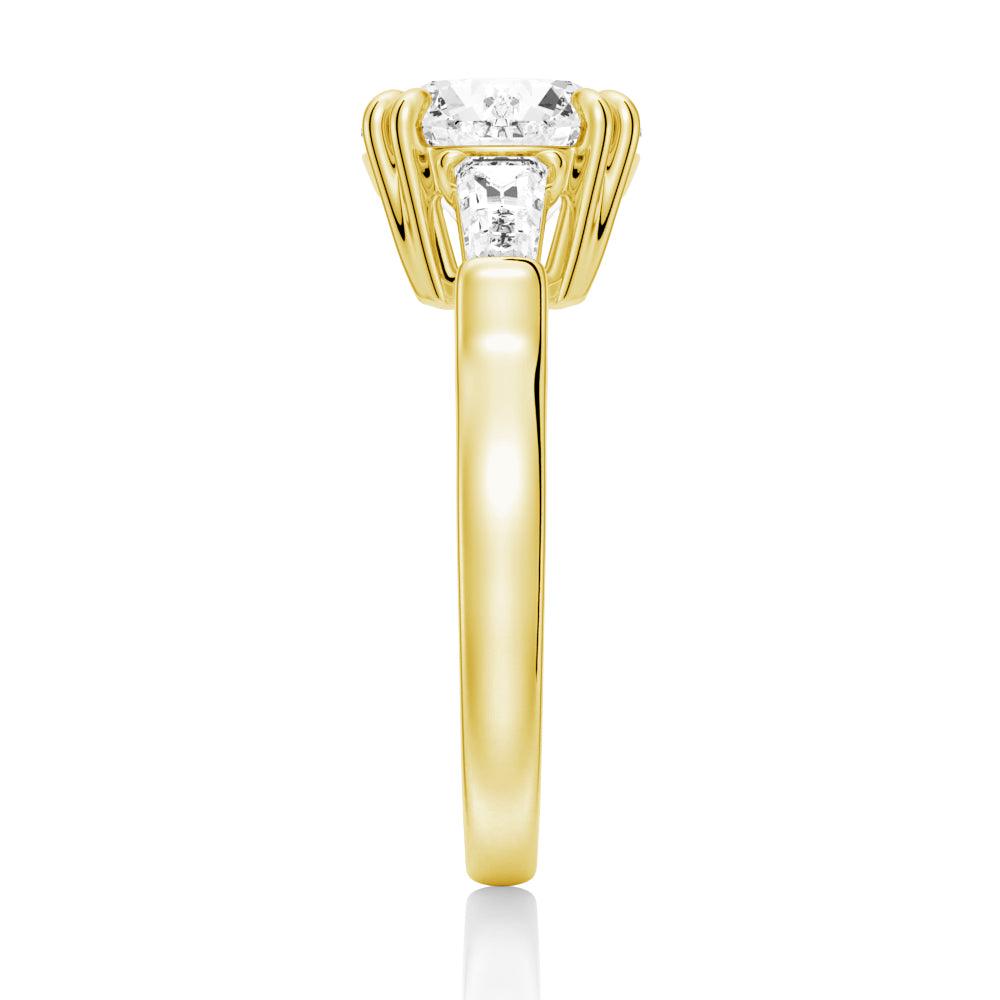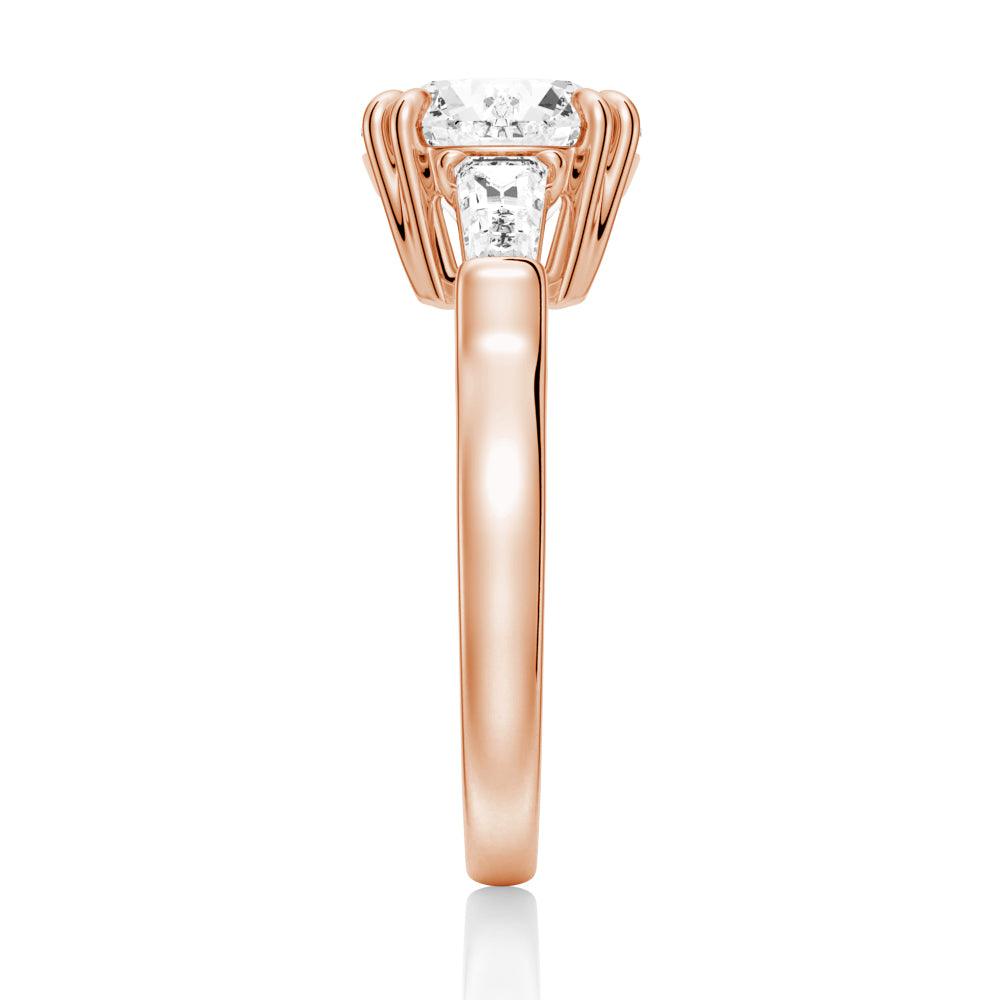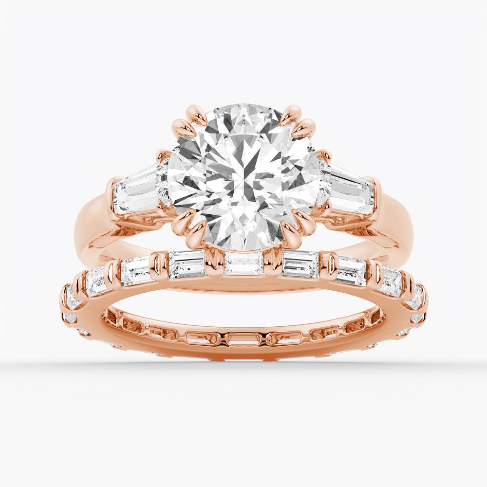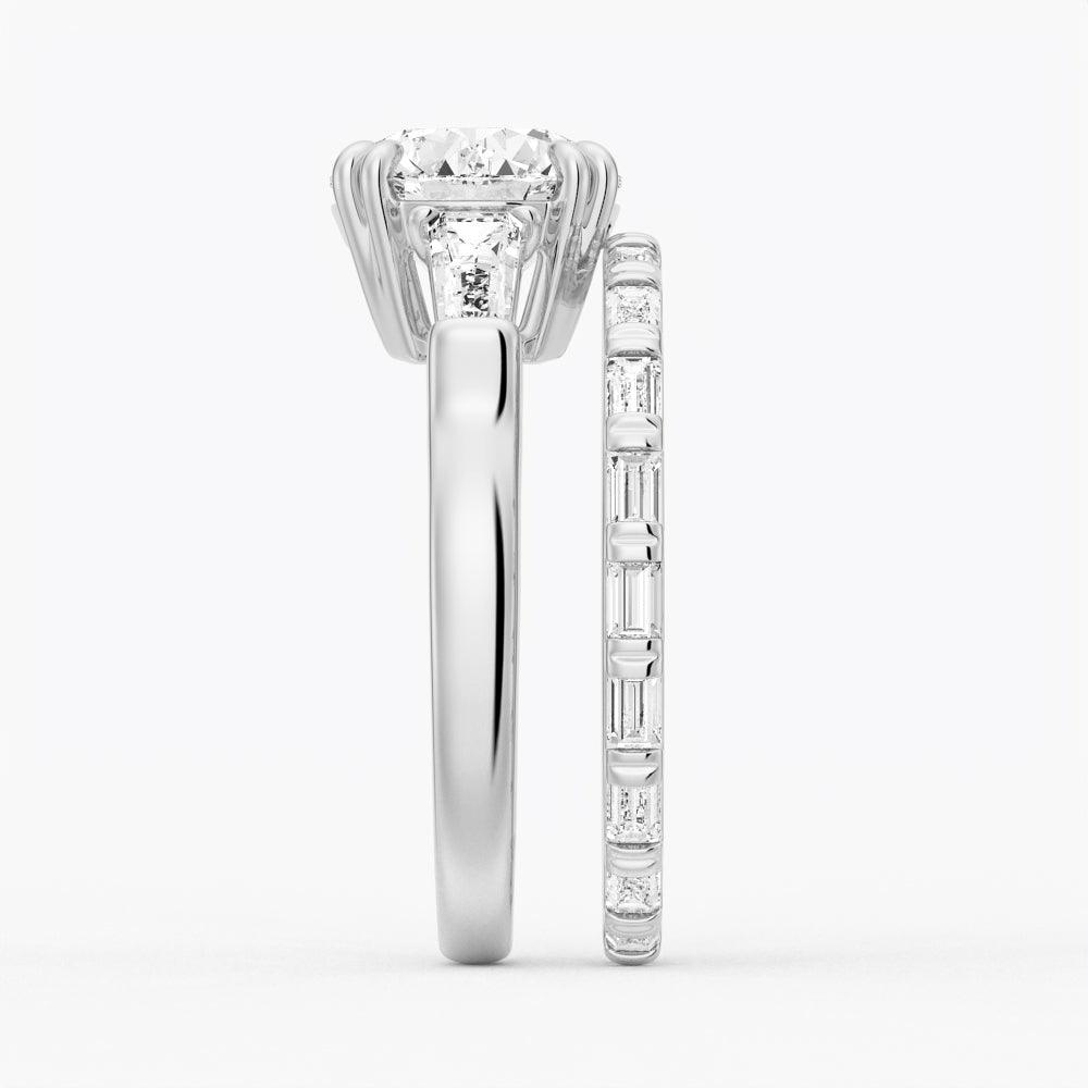 Round Cut Moissanite Engagement Ring with Tapered Baguette Side Stones