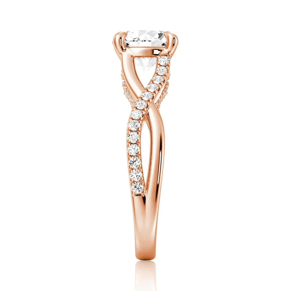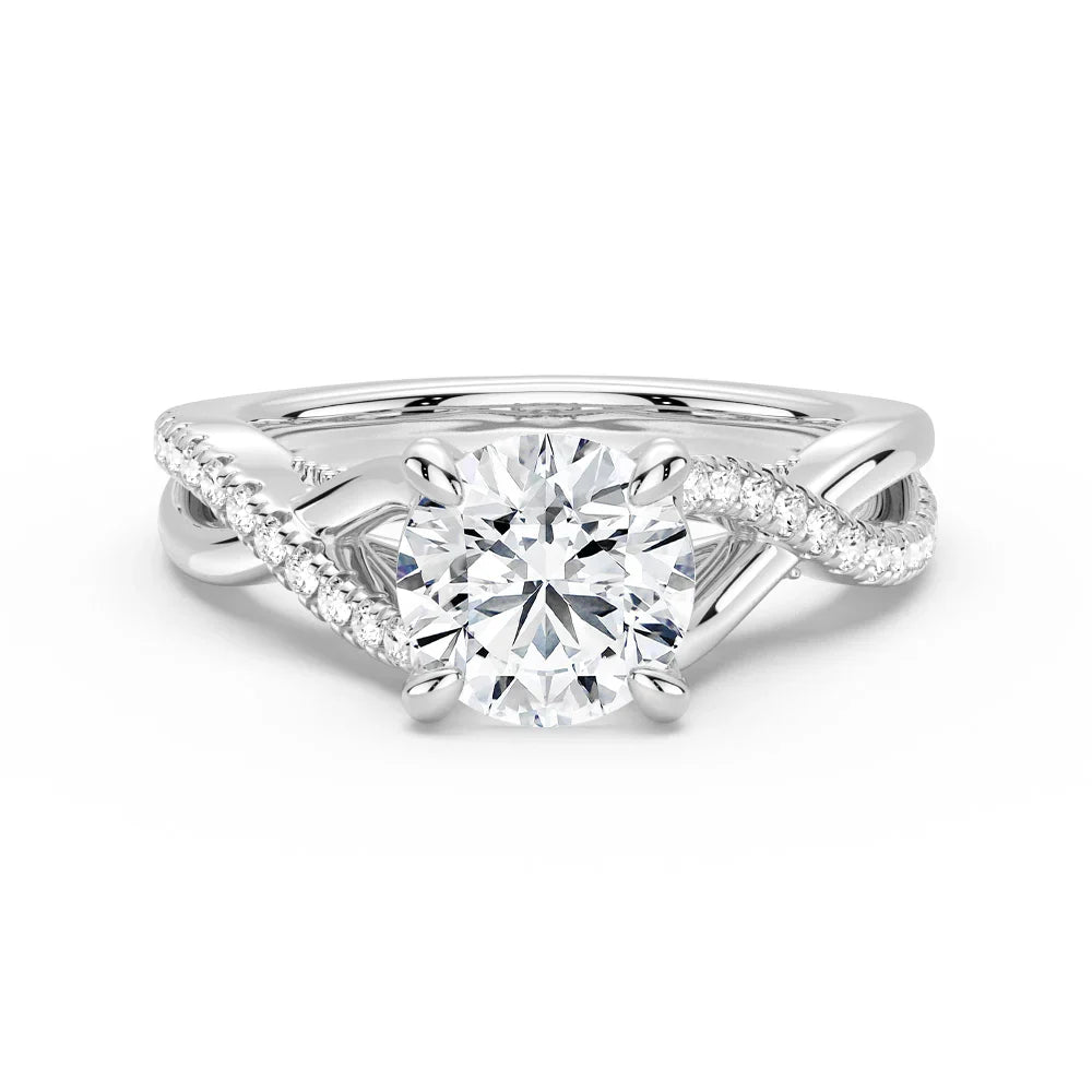 Round Moissanite Twisted Band Engagement Ring with Hidden Accents