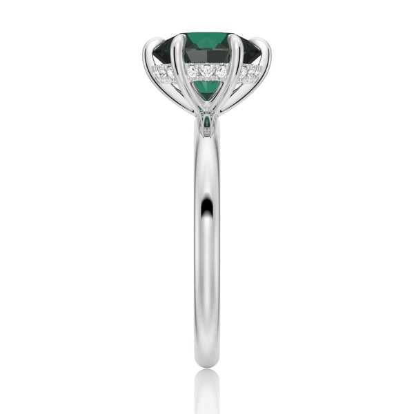 This six-prong solitaire is the ultimate classic engagement ring style. Crafted to showcase your choice of green moissanite gemstone, petite six claw prongs secure and support the center stone. The slender silhouette and polished finish of this solitaire exemplify timeless design, proving simple can be truly stunning.