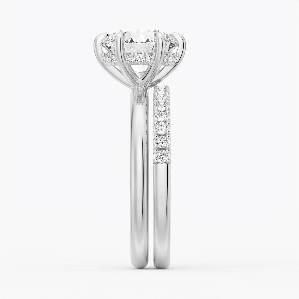 Six Prong Solitaire Moissanite Couple's Ring Set with Men's Wedding Band