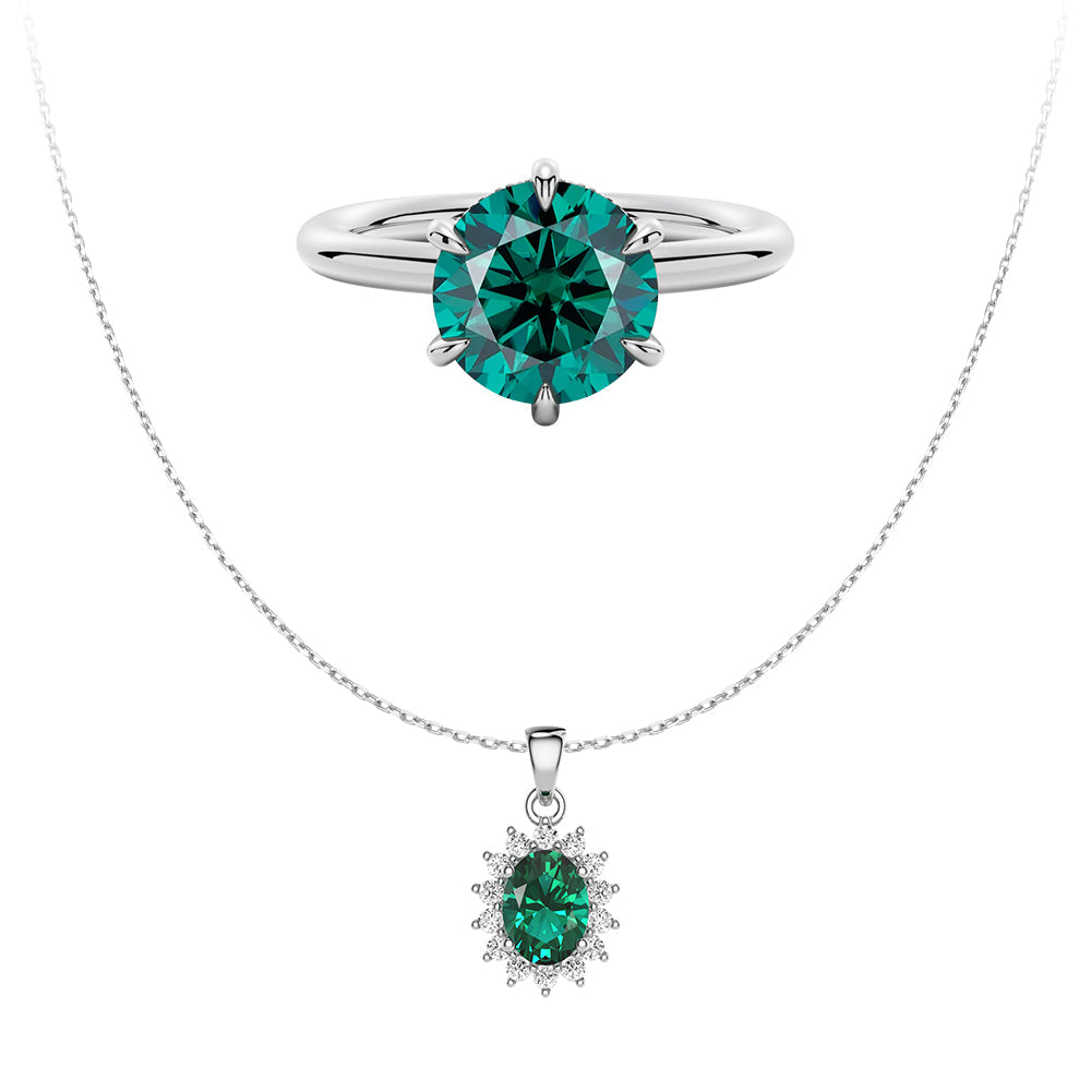 Solitaire Green Ring And Emerald Pendant Set
