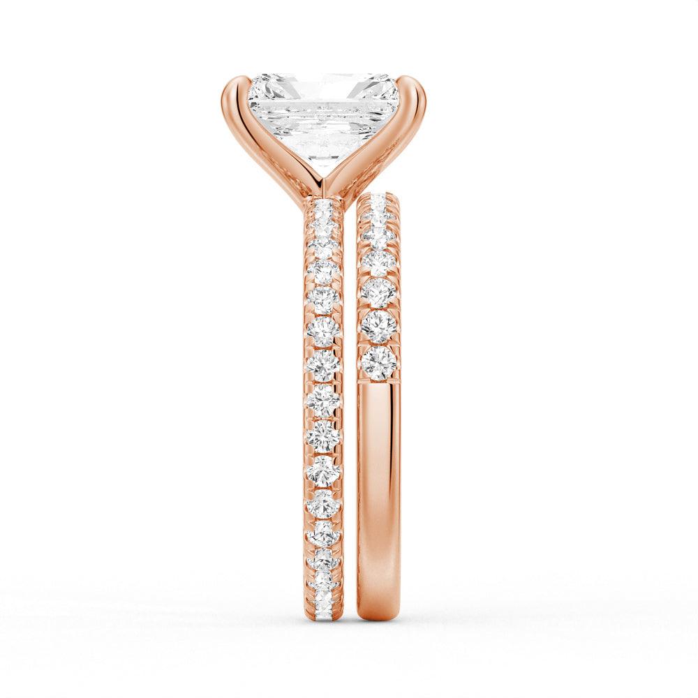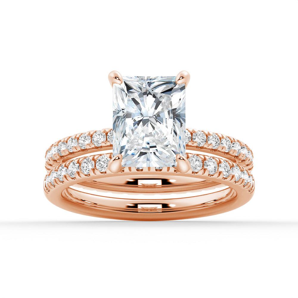 Solitaire Radiant Cut Moissanite Ring Set with Matching Wedding Band