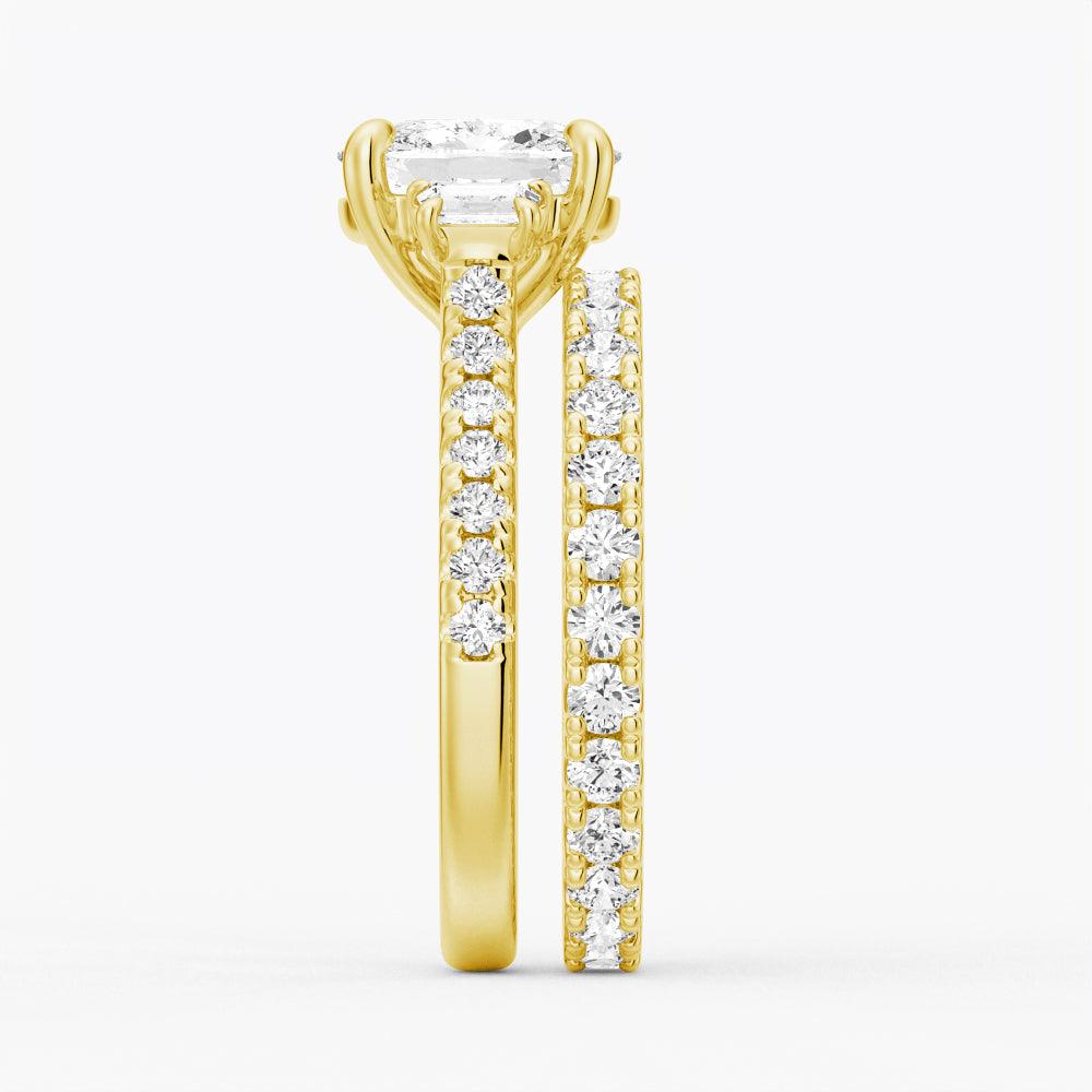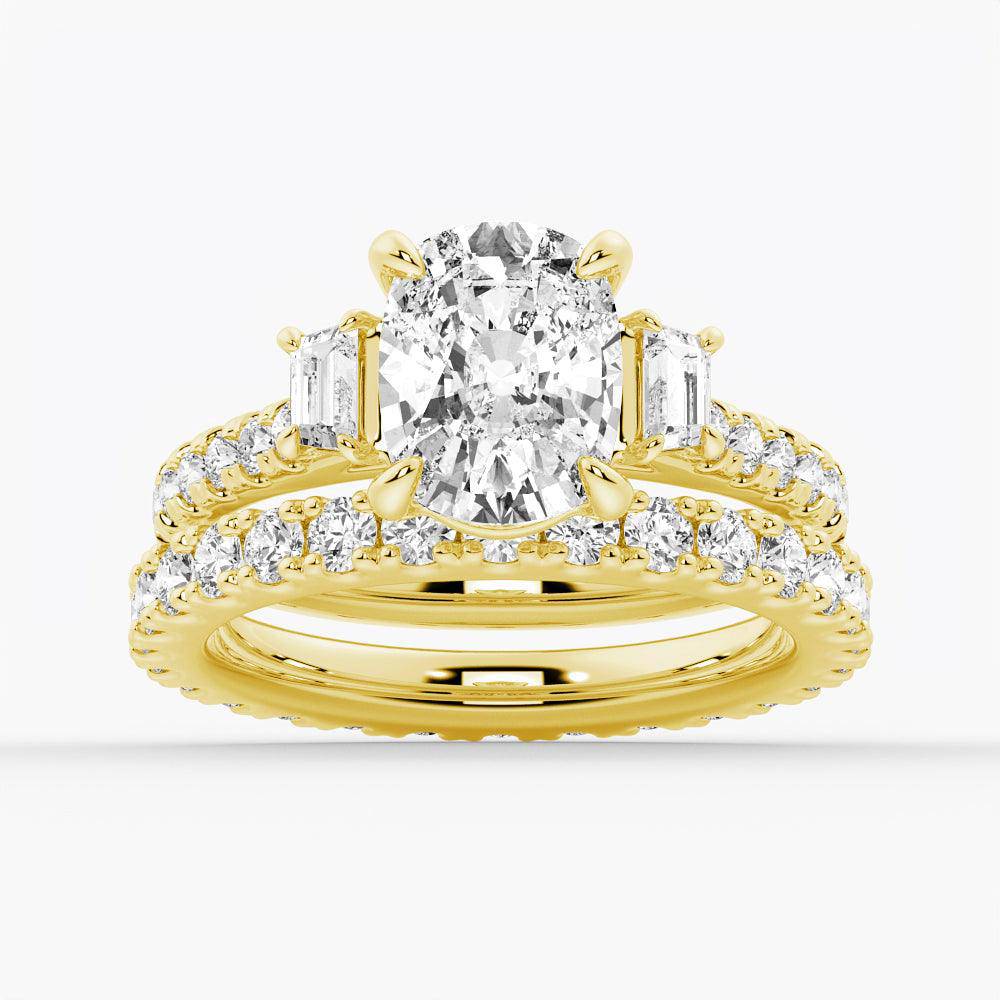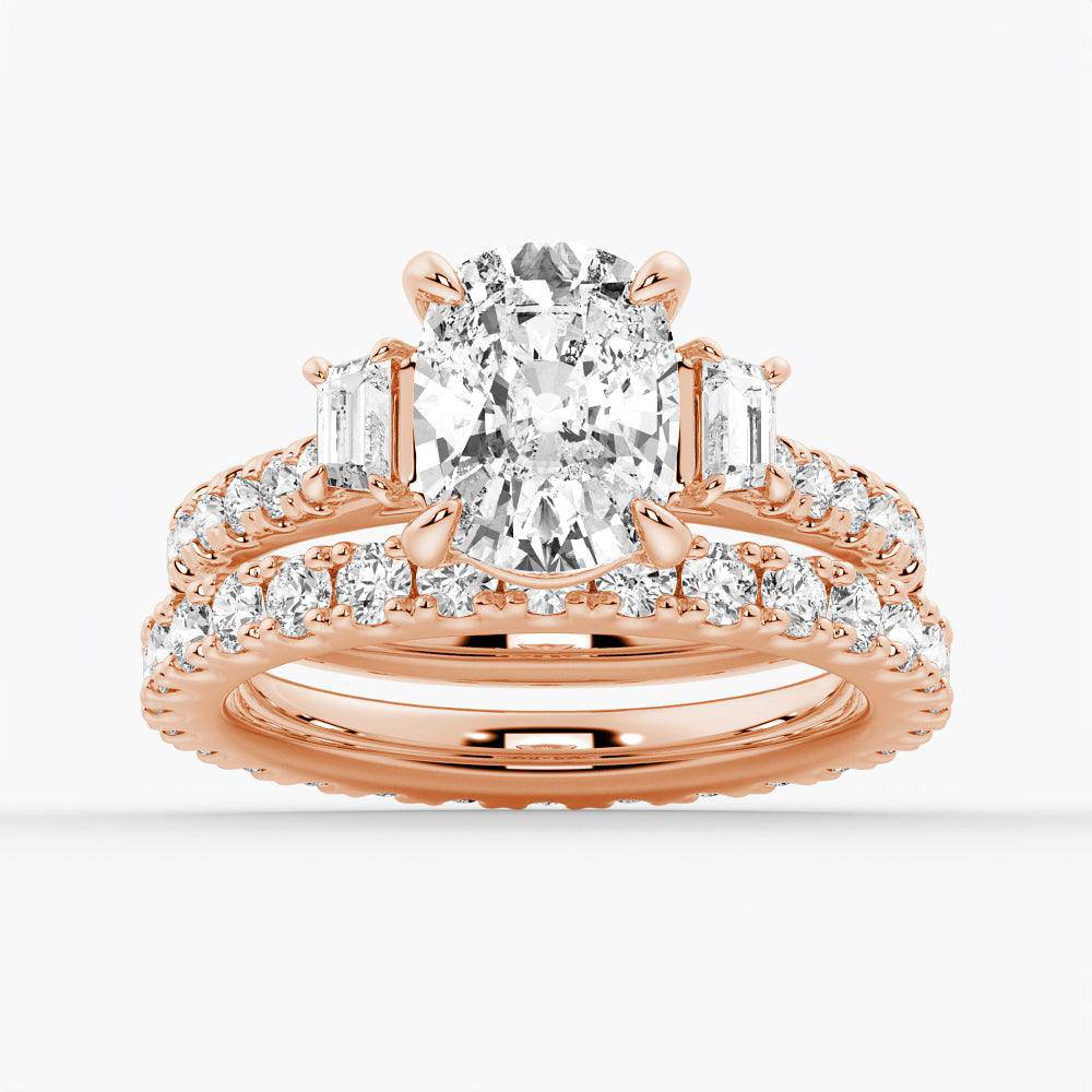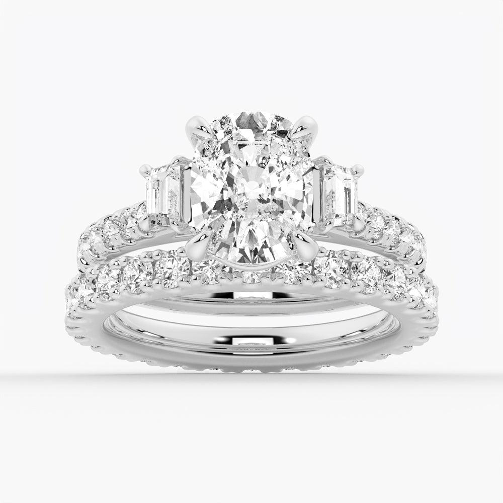 Three Stone Cushion & Half Moon Moissanite Engagement Ring with Pavé Band