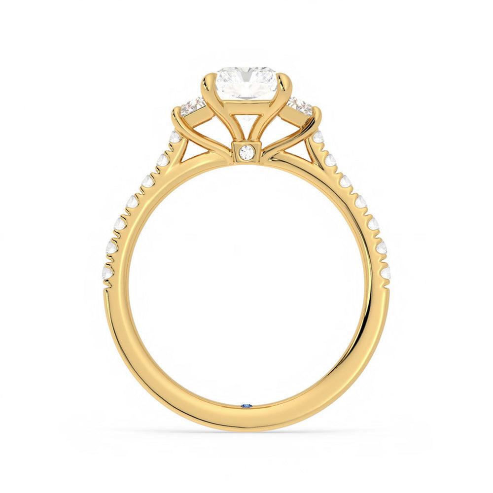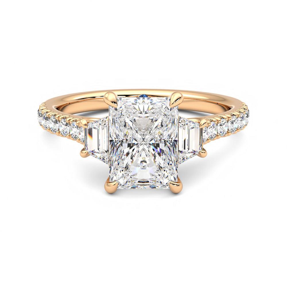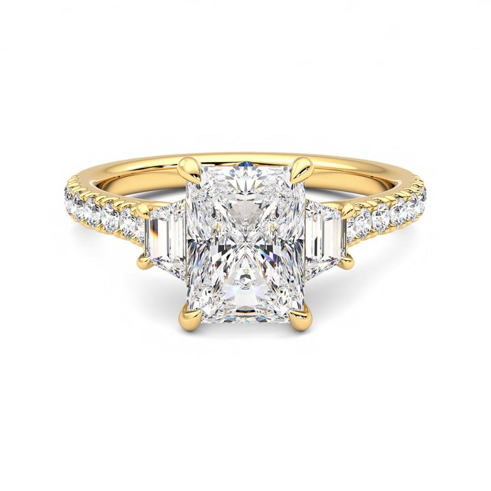Three Stone Radiant Cut & Half Moon Moissanite Engagement Ring with Hidden Anniversary Stone Accent