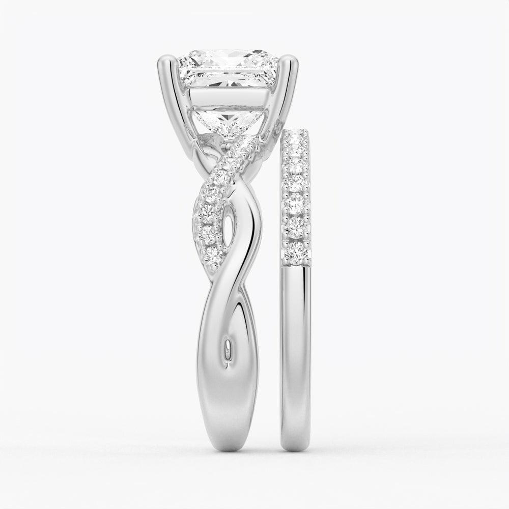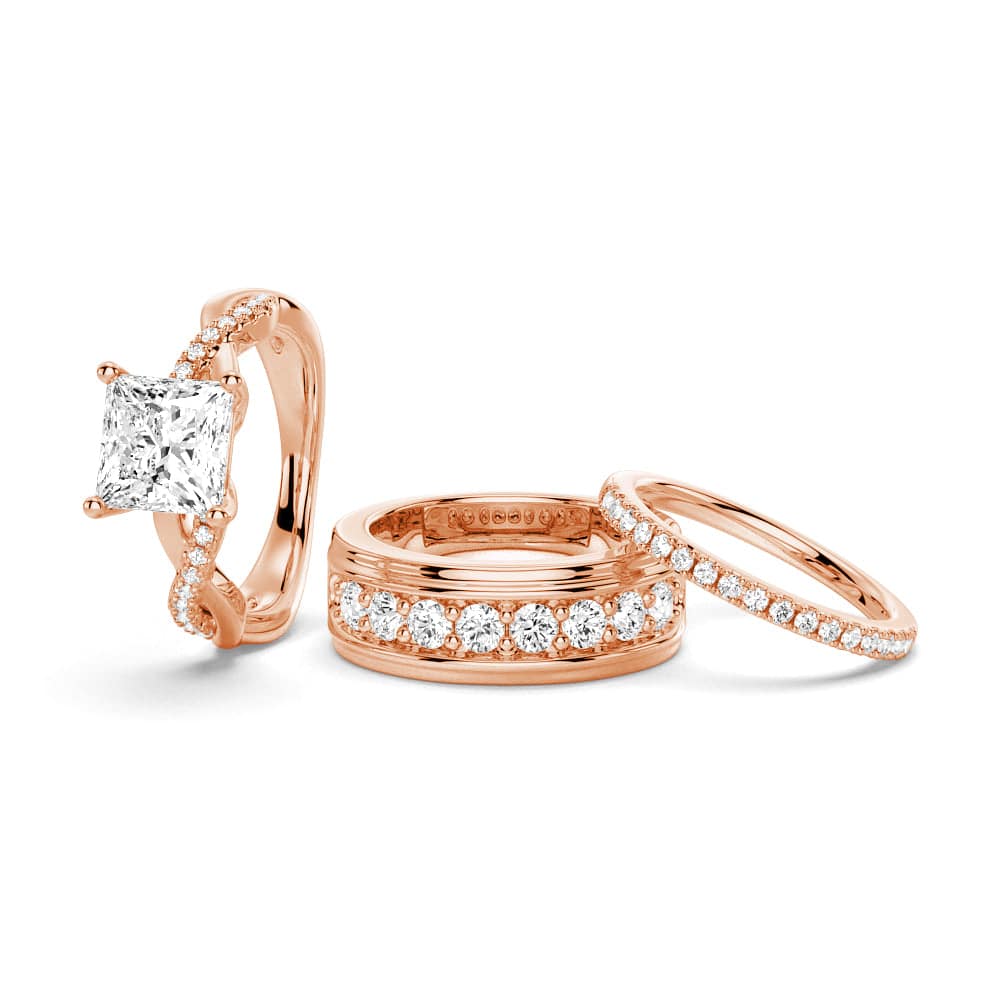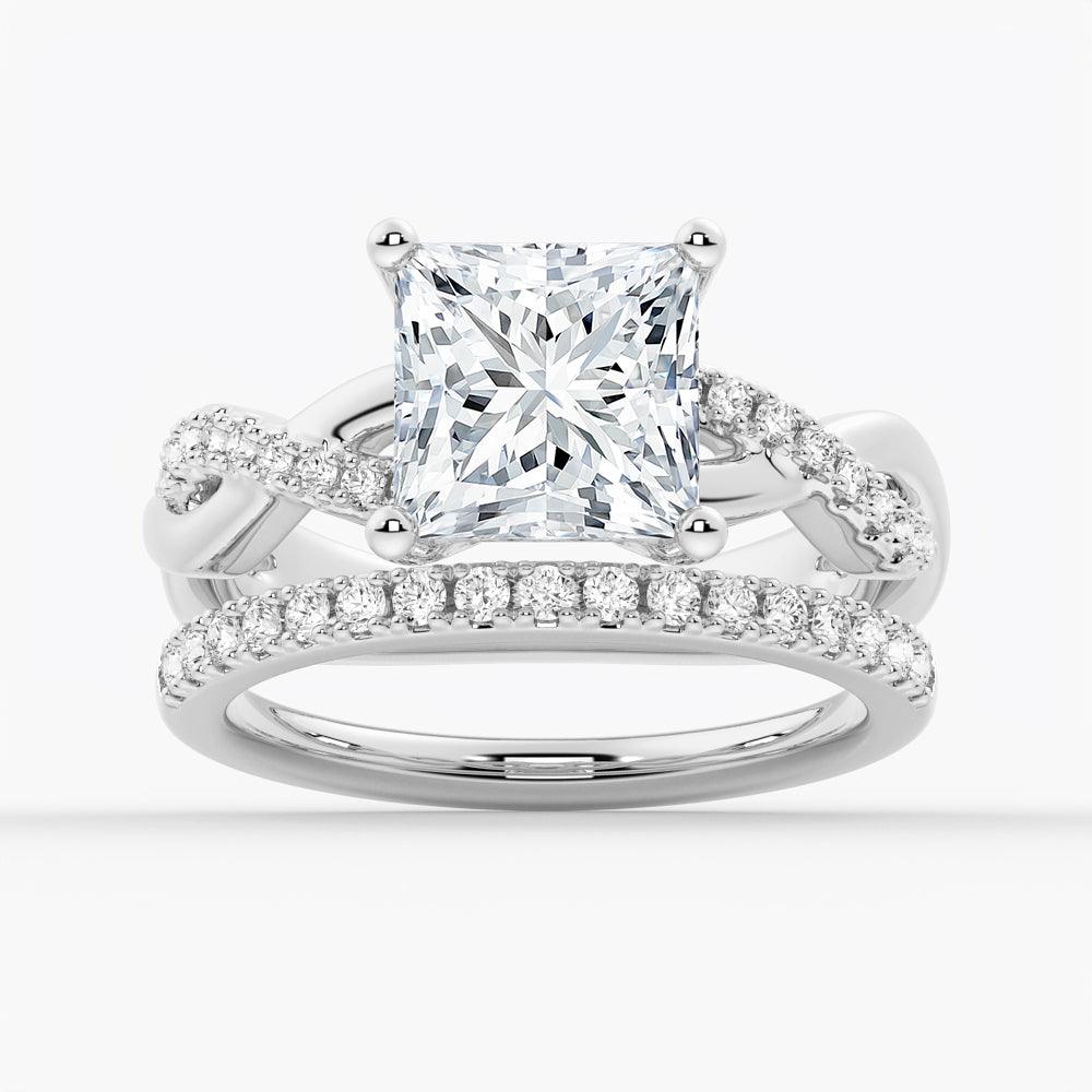 Twist Band Princess Cut Moissanite Couple's Ring Set with Men's Wedding Band