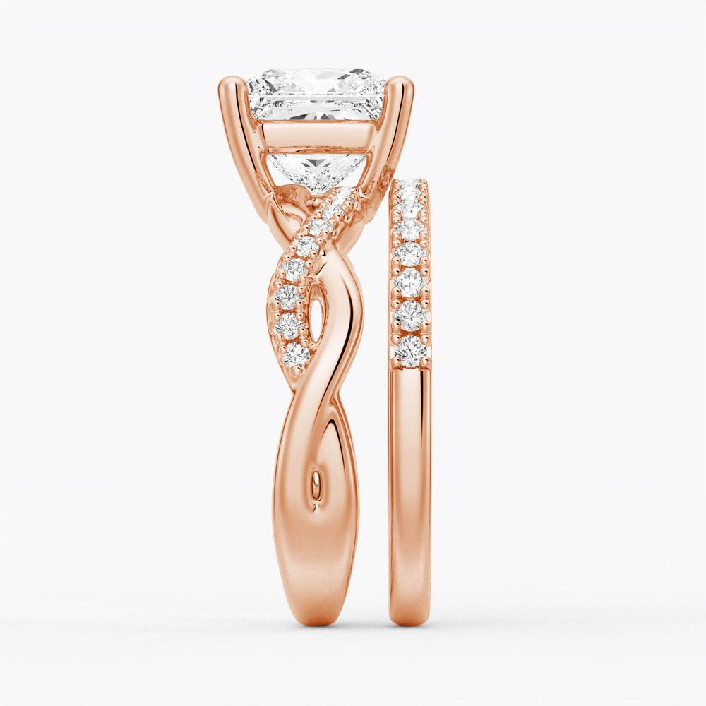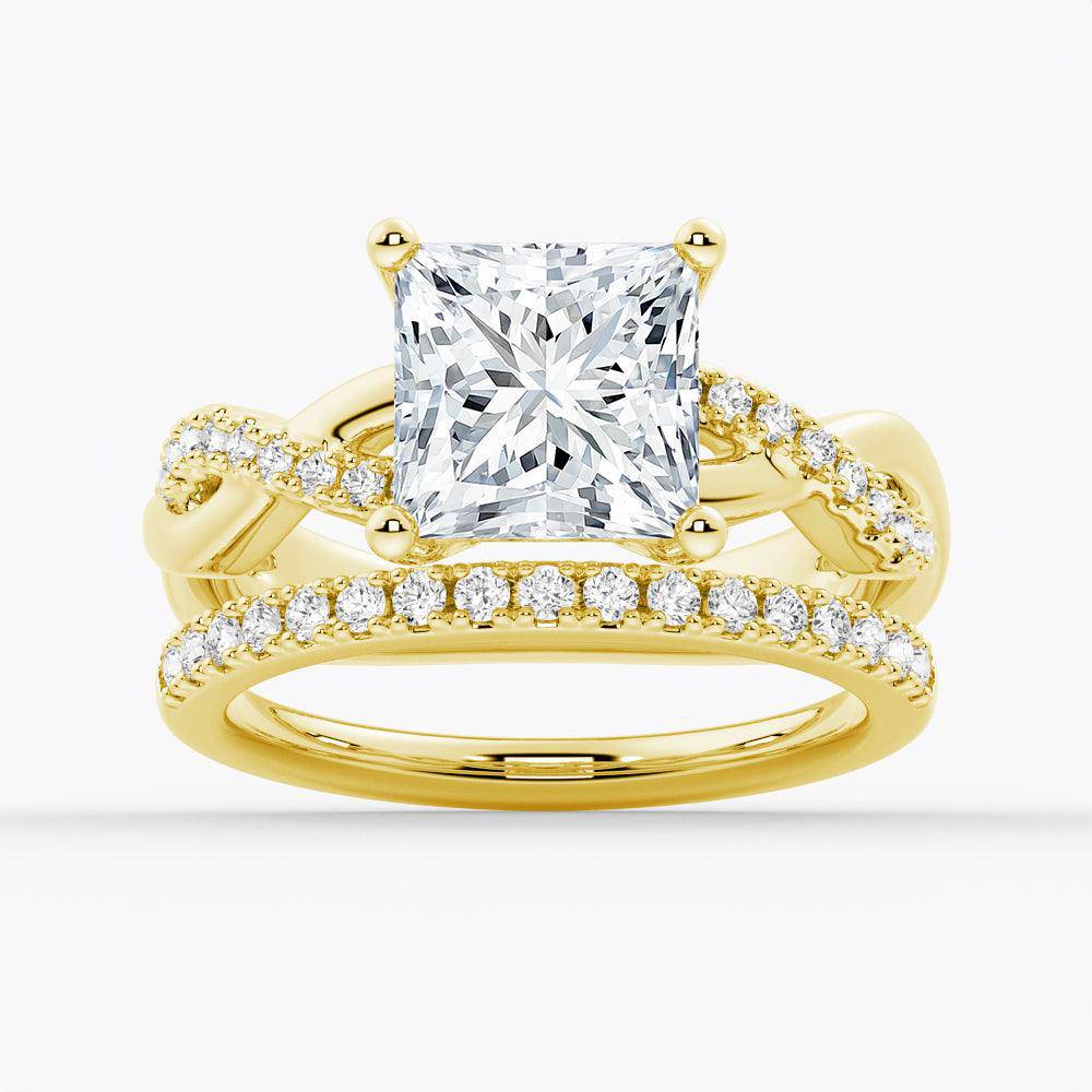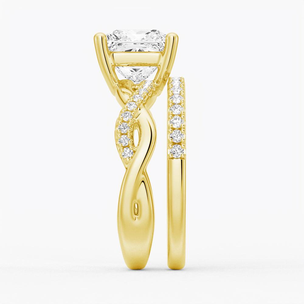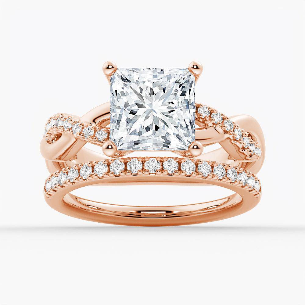 Twist Band Princess Cut Moissanite Couple's Ring Set with Men's Wedding Band