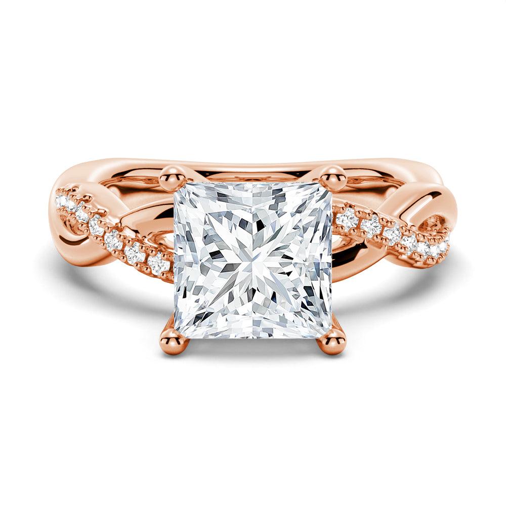 Pictured: 8mm princess cut moissanite