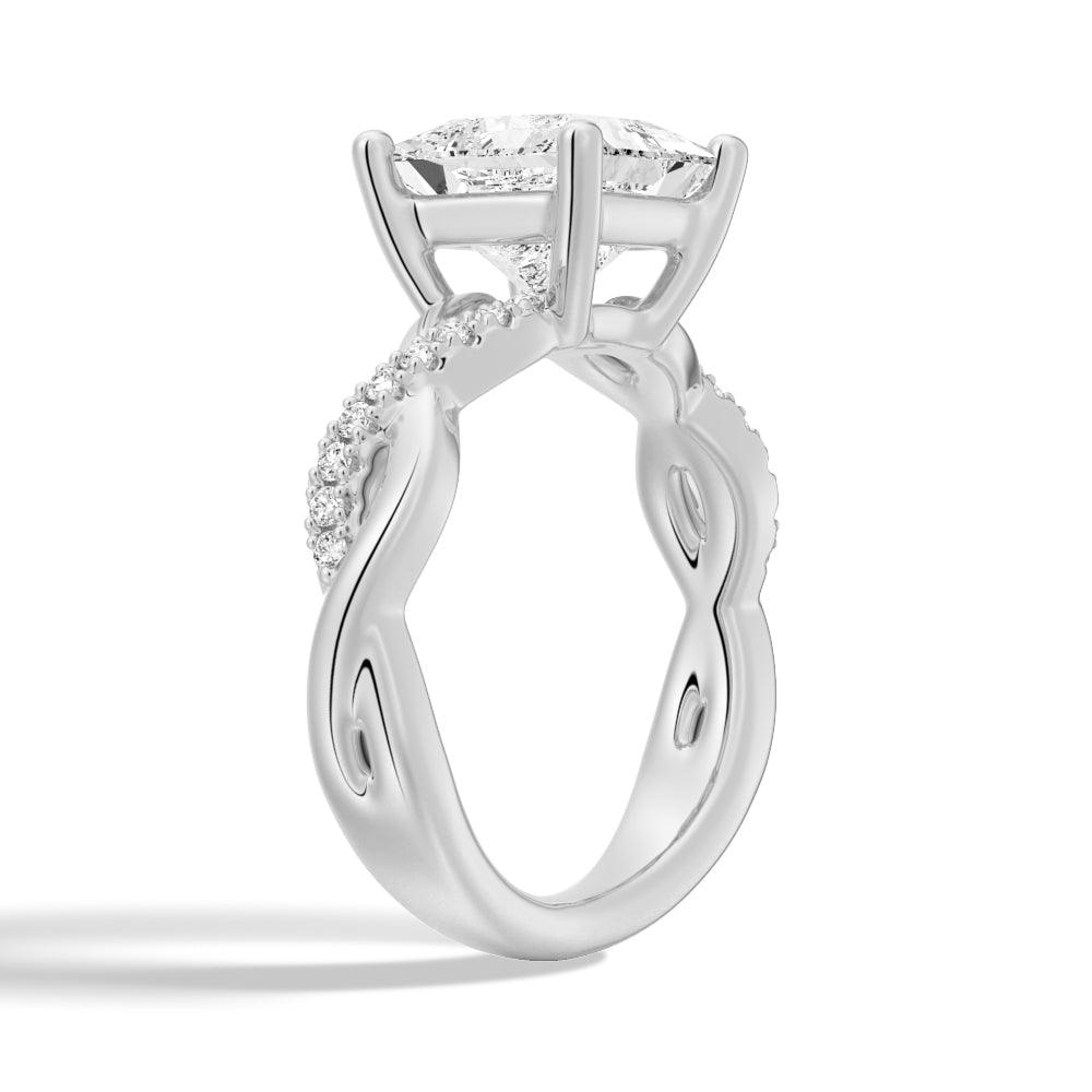 Classic with a twist, this sterling silver engagement ring features a delicate twist of pavé-set diamonds that will complement the center diamond of your choice.