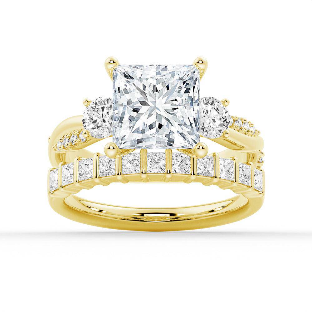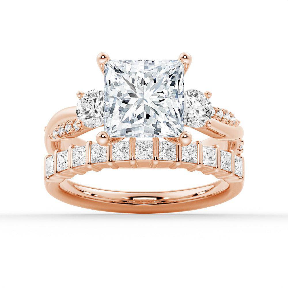Twist Princess Cut Moissanite Couple's Ring Set with Men's Wedding Band